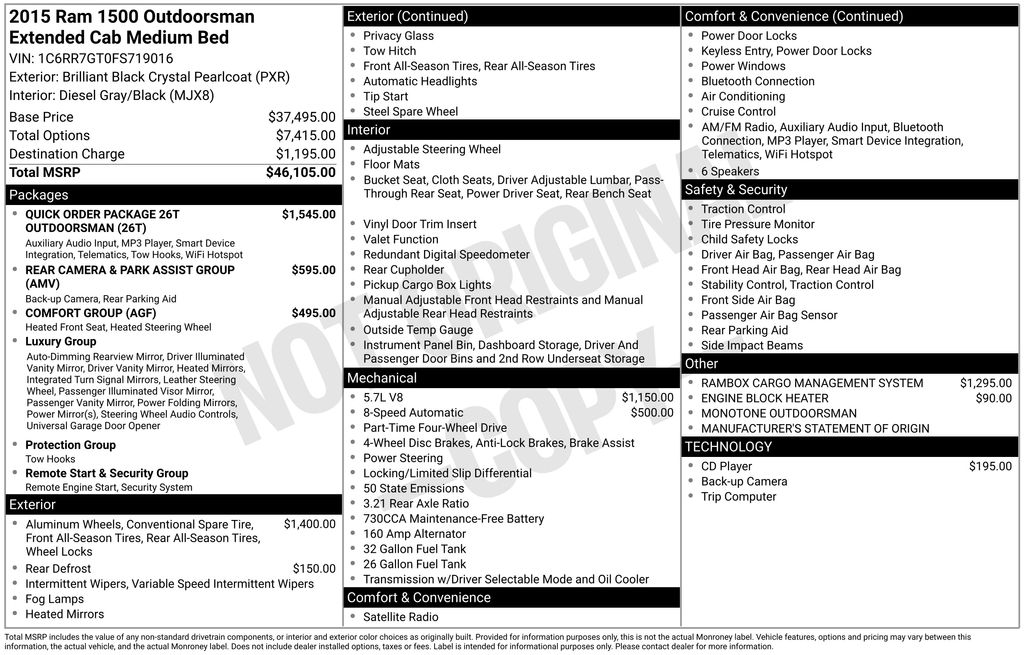 EMBRACE THE SHORTEST MONTH OF THE YEAR WITH CORWIN CHRYSLER DODGE JEEP RAM OF FARGO! WE HAVE SAVINGS ON ALL OF OUR PRE-OWNED VEHICLES AVAILABLE!! WE HAVE ONE OF THE LARGEST SELECTIONS OF INVENTORIES IN OUR AREA AT ONE SINGLE LOCATION!! Recent Arrival! Priced below KBB Fair Purchase Price! Brilliant Black Crystal Pearlcoat 2015 Ram 1500 Outdoorsman 4D Quad Cab 4WD HEMI 5.7L V8 Multi Displacement VVT CARFAX One-Owner. Clean CARFAX.