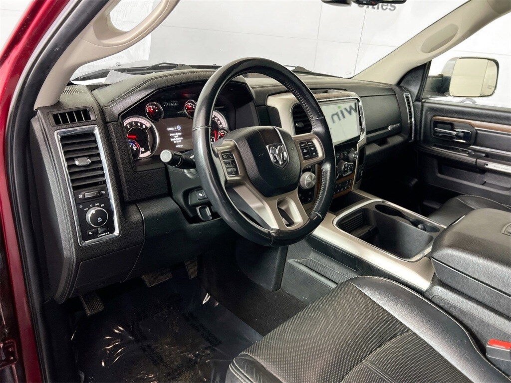 Open the door to this Laramie to be met with a cabin that is set up to exceed your needs and wants with dual-zone automatic climate control, a heated steering wheel with mounted audio controls, heated and ventilated leather-trimmed seats, and a universal garage door opener. The Uconnect® touchscreen display with the media hub, Alpine speakers, available satellite radio, integrated voice command with Bluetooth®, and available WiFi all help to keep you safe in touch as you make your way.