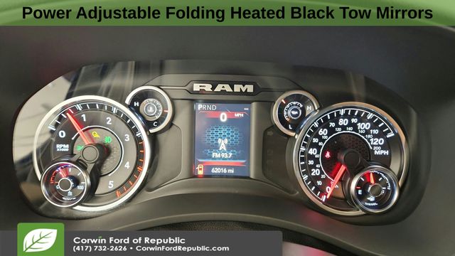 1-Year SiriusXM Radio Service, 2nd Row In Floor Storage Bins, 8.4" Touchscreen Display, Apple CarPlay, Auto-Dimming Rear-View Mirror, Big Horn Level 1 Equipment Group, Cold Weather Group, Dual Glove Boxes, Engine Block Heater, Foam Bottle Insert (Door Trim Panel), Footwell Courtesy Lamp, For More Info, Call 800-643-2112, Front Fog Lamps, Glove Box Lamp, Google Android Auto, Heated Front Seats, Heated Seats & Wheel Group, Heated Steering Wheel, Integrated Center Stack Radio, Leather Wrapped Steering Wheel, Locking Lower Glove Box, Power Adjustable Folding Heated Black Tow Mirrors, Power Adjustable Pedals, Power-Folding Mirrors, Premium Cloth 40/20/40 Bench Seat, Radio: Uconnect 4 w/8.4" Display, Rear Dome w/On/Off Switch Lamp, Steering Wheel Mounted Audio Controls, Sun Visors w/Illuminated Vanity Mirrors, Universal Garage Door Opener, Wheels: 18" x 8.0" Polished Aluminum, Winter Front Grille Cover. Priced below KBB Fair Purchase Price! CARFAX One-Owner. Clean CARFAX.