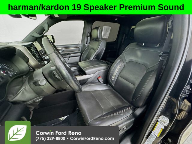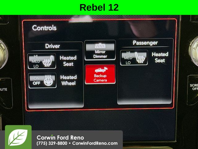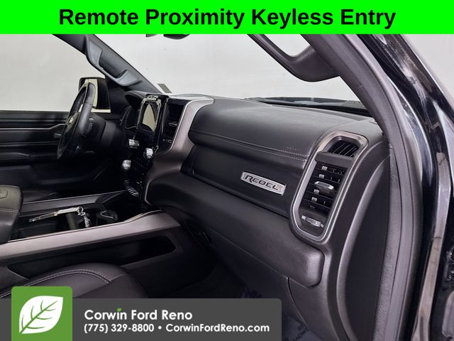 Recent Arrival! This Ram 1500 is well equipped and includes these key features and benefits, Four Wheel Drive, Heated Seats, Blind-Spot Monitors, Navigation System, Touchscreen Controls, Backup Camera, Keyless Access with Push Button Start, Automatic Headlights, Apple CarPlay, Android Auto, Voice Recognition, Bluetooth Hands-Free, Factory Tow Package, Collision Warning System, 115V Auxiliary Rear Power Outlet, 2 USB Full Function/Charge Only Media Hub, 4 Adjustable Cargo Tie-Down Hooks, Auto-Dimming Rear-View Mirror, Bed Utility Group, Black 4x4 Tailgate Badge, Black Appearance Package, Black Exterior Truck Badging, Black Front Bumper w/Black Plate, Black Headlamp Bezels, Black Outline Mustache Grille Texture 3, Black Premium Power Mirrors, Body Color Door Handles, Deployable Bed Step, Foam Bottle Insert (Door Trim Panel), GPS Navigation, harman/kardon 19 Speaker Premium Sound, Heated Front Seats, Heated Steering Wheel, Lux Leather Trimmed Bucket Seats, ParkSense Front/Rear Park Assist w/Stop, Pick-Up Box Lighting, Power Adjustable Pedals, Quick Order Package 25W Rebel, Radio: Uconnect 12 w/Navigation, Radio: Uconnect 4 w/8.4" Display, Rain Sensitive Windshield Wipers, RAM Grille Badge - Black, Rear Dome w/On/Off Switch Lamp, Rear Underseat Compartment Storage, Rear Window Defroster, Rebel 12, Rebel Level 2 Equipment Group, Remote Proximity Keyless Entry, Security Alarm, Single Disc Remote CD Player, Sun Visors w/Illuminated Vanity Mirrors, Universal Garage Door Opener, Wheels: 18" x 8.0" Gloss Black. CARFAX One-Owner. Available at Corwin Ford Reno located at 11111 South Virginia St.