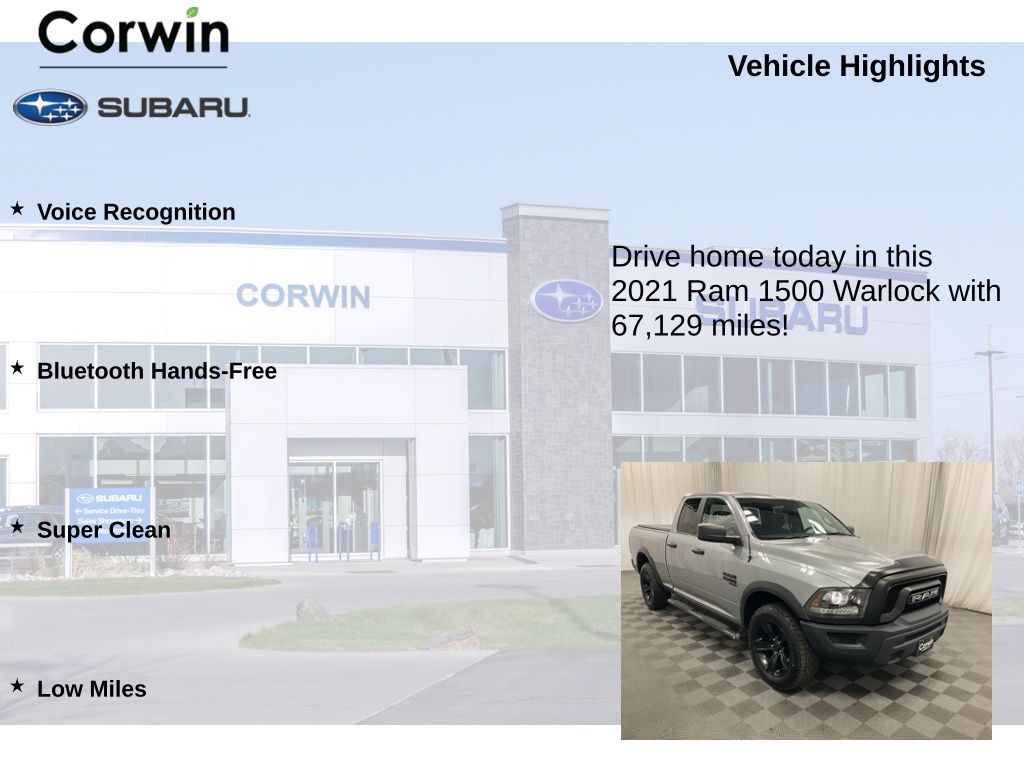 Whether you're tackling tough jobs or embarking on outdoor excursions, the 2021 Ram 1500 Classic Warlock is the perfect companion. Experience the power, capability, and style that make this truck a true standout in its class. Visit our showroom today and let us demonstrate why the Warlock is the perfect choice for you.