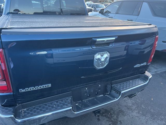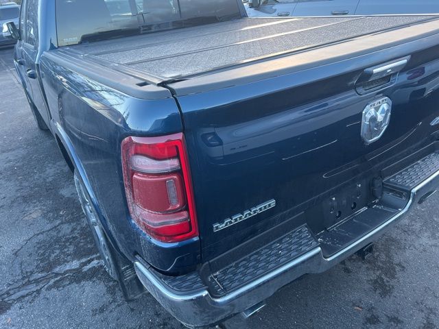 Owning our Accident-Free, Ultra Low Mile 2022 RAM 1500 Laramie Crew Cab 4X4 lets you lock and load with impressive luxury in Patriot Blue Pearl! Motivated by a 5.7 Liter HEMI V8 serving up 395hp matched to an 8 Speed Automatic transmission for mighty strength. Heavy-duty shocks help this Four Wheel Drive truck handle bigger challenges backed by the ability to achieve nearly 22mpg on the highway. Thanks to our RAM 1500's LED lighting, fog lamps, heated chrome power mirrors, bright bumpers, a tonneau cover, and alloy wheels, you can also take on your days with dynamic good looks. A tow hitch receiver is already in place, too.