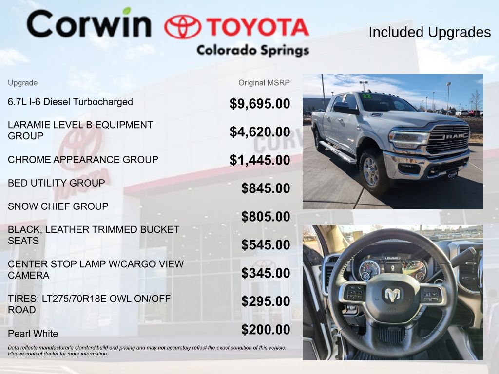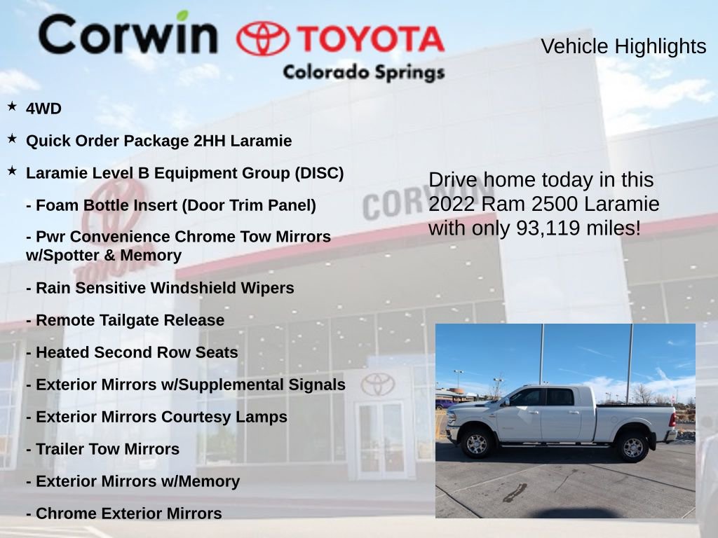 Discover the ultimate in power, capability, and luxury with this exceptional 2022 Ram 2500 Laramie. This remarkable truck is engineered to conquer any challenge, whether you're taming the open road or tackling the toughest terrain.