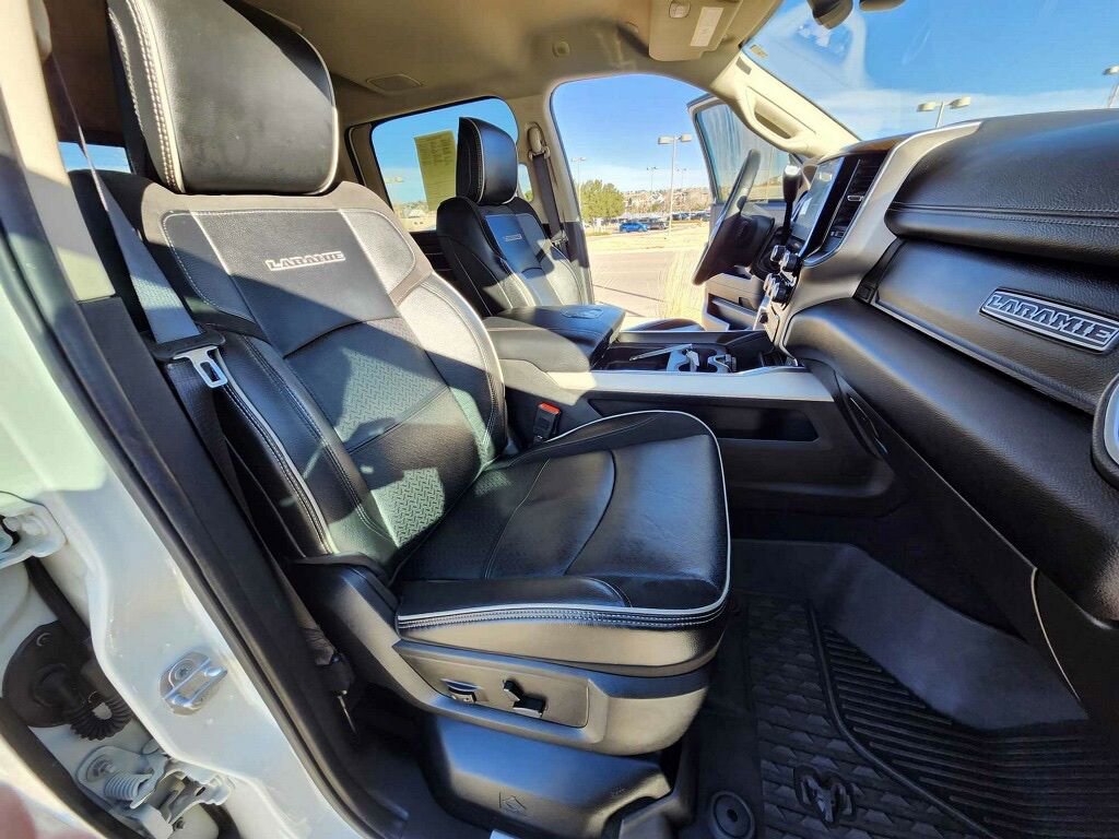 The Laramie Level B Equipment Group elevates this truck to new heights, offering a wealth of premium amenities. Indulge in the comfort of heated front seats, the convenience of a power-adjustable driver's seat, and the sophisticated style of leather-trimmed bucket seats. The 8.4-inch Uconnect 5 touchscreen display puts intuitive technology at your fingertips, seamlessly integrating your digital life.