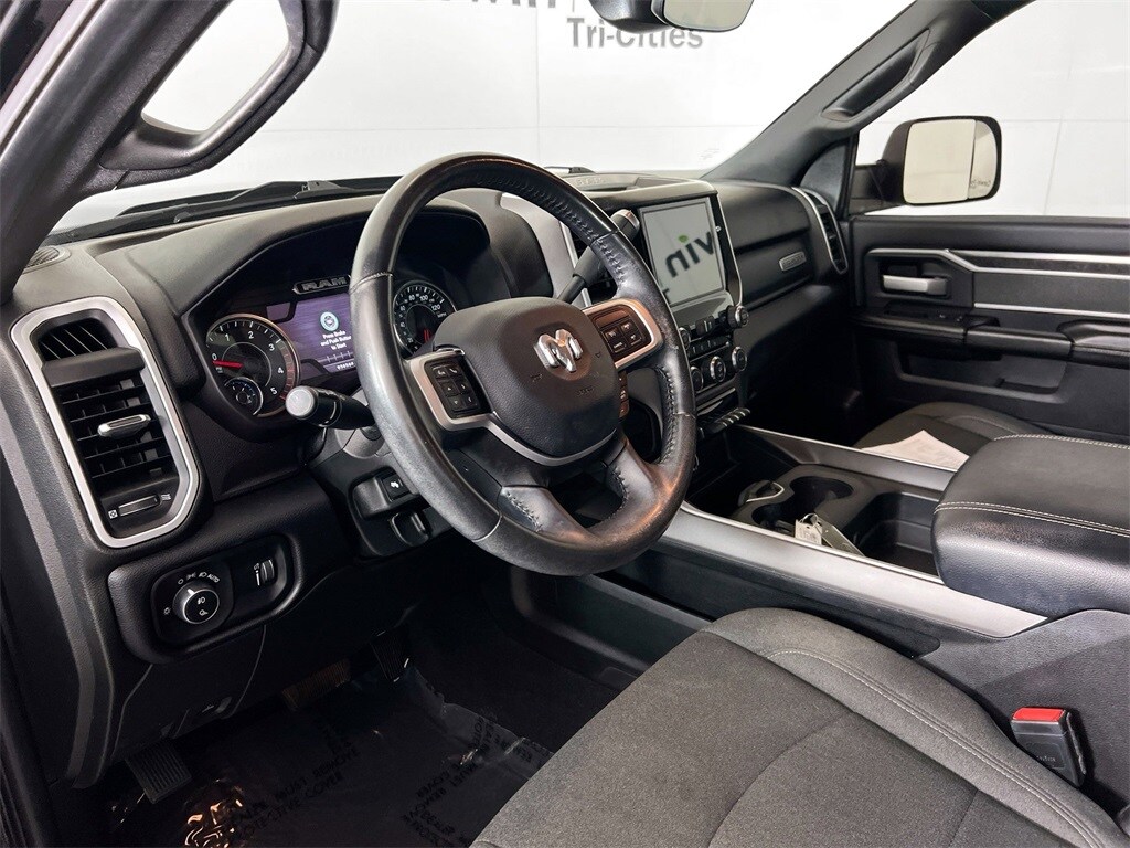 Our Big Horn cabin has key benefits for better trucking, starting with our package for heated cloth front seats, a heated leather steering wheel, dual-zone automatic climate control, remote start, a power sliding rear window, power-adjustable pedals, and a 7-inch driver display. A Uconnect® infotainment system delivers digital convenience with an 8.4-inch touchscreen, voice control, WiFi compatibility, Android Auto®, Apple CarPlay®, and six-speaker audio.