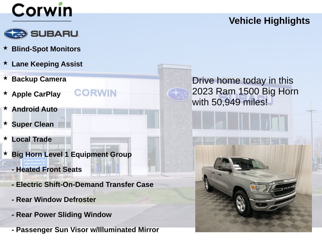Elevate your driving experience with this exceptional 2023 Ram 1500 Big Horn/Lone Star. This well-equipped and meticulously maintained truck is ready to take on any challenge with its powerful 3.6L V6 24V VVT engine and 4WD capabilities.