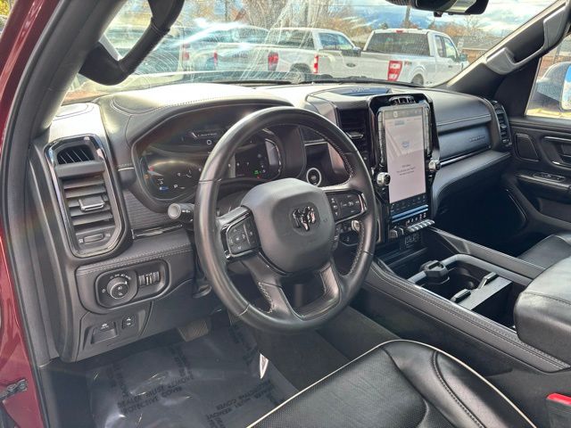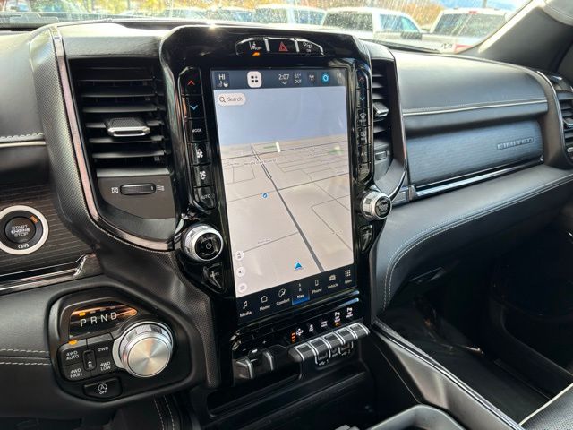 Accent Color Door Handles, Accent Color Premium Power Mirrors, Adaptive Cruise Control w/Stop & Go, Auto-Dimming Exterior Driver Mirror, Black Day Light Opening Moldings, Black Exterior Truck Badging, Black Grille Surround Texture 7 Black, Black Headlamp Bezels, Black Painted Exterior Mirrors Caps, Body Color Front Bumper, Body Color Rear Bumper w/Step Pads, Convex Wide-Angle Exterior Mirror Insert, Digital Rearview Mirror, Dual Exhaust w/Black Tips, Exterior Mirrors Courtesy Lamps, Exterior Mirrors w/Heating Element, Exterior Mirrors w/Memory, Exterior Mirrors w/Supplemental Signals, harman/kardon 19 Speaker Premium Sound, Heads-Up Display, Lane Keep Assist, LED CHMSL Lamp, Limited Level 1 Equipment Group, MOPAR Spray In Bedliner, Navigation System, Night Edition, Parallel & Perp Park Assist w/Stop, ParkSense Front/Rear Park Assist w/Stop, Pedestrian Emergency Braking, Pick-Up Box Lighting, Power Running Boards, Power-Folding Mirrors, Quick Order Package 27M Limited, RAM Grille Badge - Black, Sport Performance Hood, Surround View Camera System, Tailgate Ajar Warning Lamp, Tow Hooks, Tri-Fold Tonneau Cover, Wheels: 22" x 9" Black Aluminum, Wireless Charging Pad. CARFAX One-Owner.