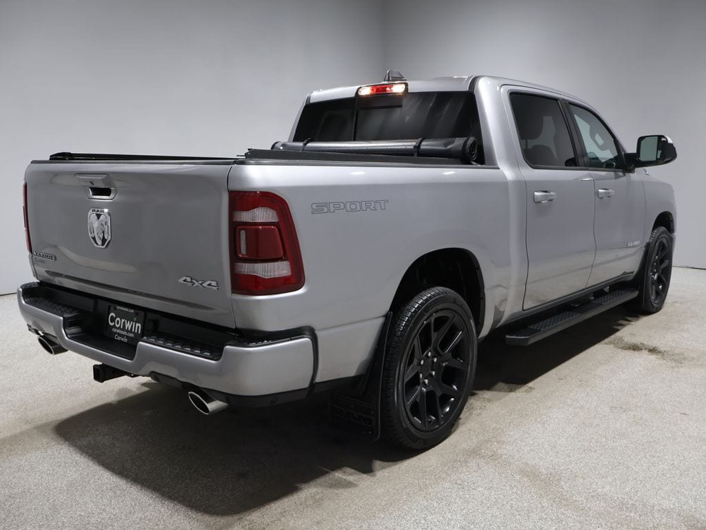 This Ram 1500 is well equipped and includes these key features and benefits, Heated and Cooled Seats, Navigation System, Touchscreen Controls, Backup Camera, Automatic Headlights, Bluetooth Handsfree, AWD / 4x4 / Four Wheel, 12" Touchscreen Display, 2nd Row In Floor Storage Bins, 4G LTE Wi-Fi Hot Spot, Adaptive Cruise Control w/Stop & Go, Advanced Safety Group, Apple CarPlay, Auto High Beam Headlamp Control, Black Interior Accents, Blind Spot & Cross Path Detection, Body Color Exterior Mirrors, Body Color Front Bumper, Body Color Premium Power Mirrors, Body Color Rear Bumper w/Step Pads, Connected Travel & Traffic Services, Connectivity - US/Canada, Disassociated Touchscreen Display, Electric Shift-On-Demand Transfer Case, Foam Bottle Insert (Door Trim Panel), For Details, Visit DriveUconnect.com, For More Info, Call 800-643-2112, Front Door Accent Lighting, Front LED Fog Lamps, Global Telematics Box Module (TBM), Google Android Auto, GPS Antenna Input, GPS Navigation, Grille Surround 3 Body Color Tex 2 Black, harman/kardon 19 Speaker Premium Sound, HD Radio, Heated front seats, Integrated Center Stack Radio, Integrated Voice Command w/Bluetooth, Lane Keep Assist, Laramie Level B Equipment Group, LED Reflector Headlamps, Navigation System, Parallel & Perp Park Assist w/Stop, ParkSense Front/Rear Park Assist w/Stop, Pedestrian Emergency Braking, Quick Order Package 27H Laramie, Radio: Uconnect 5 Nav w/12.0" Display, Rain Sensitive Windshield Wipers, RAM Grille Badge - Chrome, Rear Door Accent Lighting, Rear Power Sliding Window, Rear Underseat Compartment Storage, Rear Window Defroster, Remote Tailgate Release, SiriusXM Radio Service, SiriusXM w/360L, Sport Appearance Package, Sport Decal, Sport Performance Hood, Surround View Camera System, Tailgate Ajar Warning Lamp, Trailer Brake Control, Trailer Light Check, Trailer Reverse Steering Control, Trailer Tire Pressure Monitoring System, Trailer Tow Group, USB Host Flip, Ventilated Front Seats, Wheels: 20" x 9" Premium Painted w/Inserts.