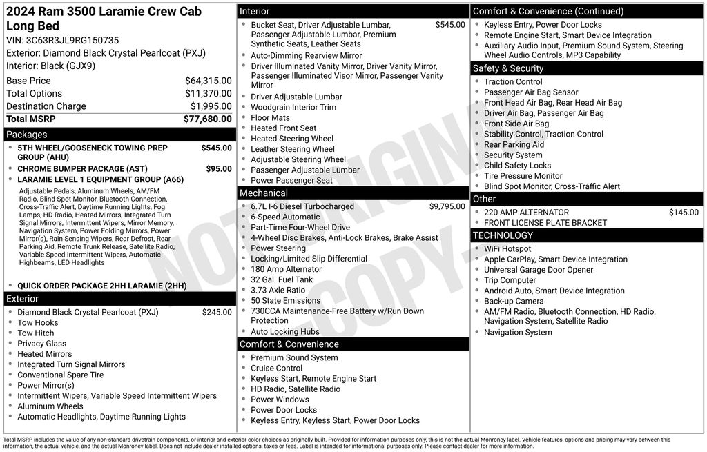 Under the hood, the powerful Cummins 6.7L I6 Turbodiesel engine, paired with a 6-speed automatic transmission and 4-wheel drive, delivers exceptional performance and towing capacity. The 5th Wheel/Gooseneck Towing Prep Group ensures you can haul your heaviest loads with ease.