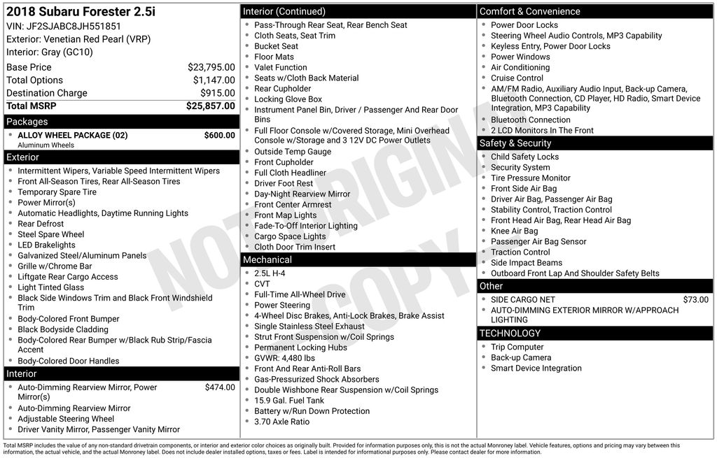 Discover the exceptional value and versatility of this 2018 Subaru Forester 2.5i. With its impressive performance, advanced safety features, and exceptional utility, this Forester is the perfect companion for your active lifestyle.