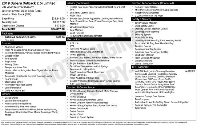 Whether you're embarking on a weekend getaway or navigating your daily commute, this 2019 Subaru Outback 2.5i Limited is the perfect companion to elevate your driving experience. Visit our showroom today and discover the exceptional value and capabilities this Outback has to offer.