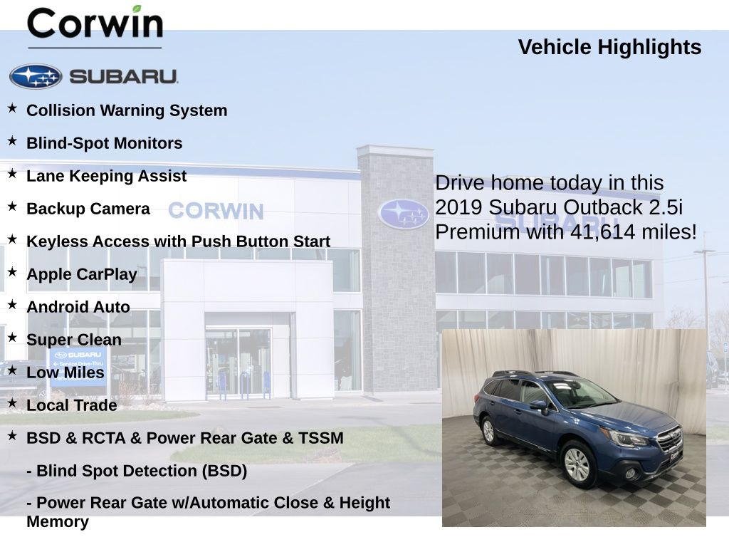 Discover the perfect balance of capability, technology, and efficiency in this 2019 Subaru Outback 2.5i Premium. Schedule a test drive today and experience the difference for yourself. We're confident you'll be impressed by this exceptional vehicle.