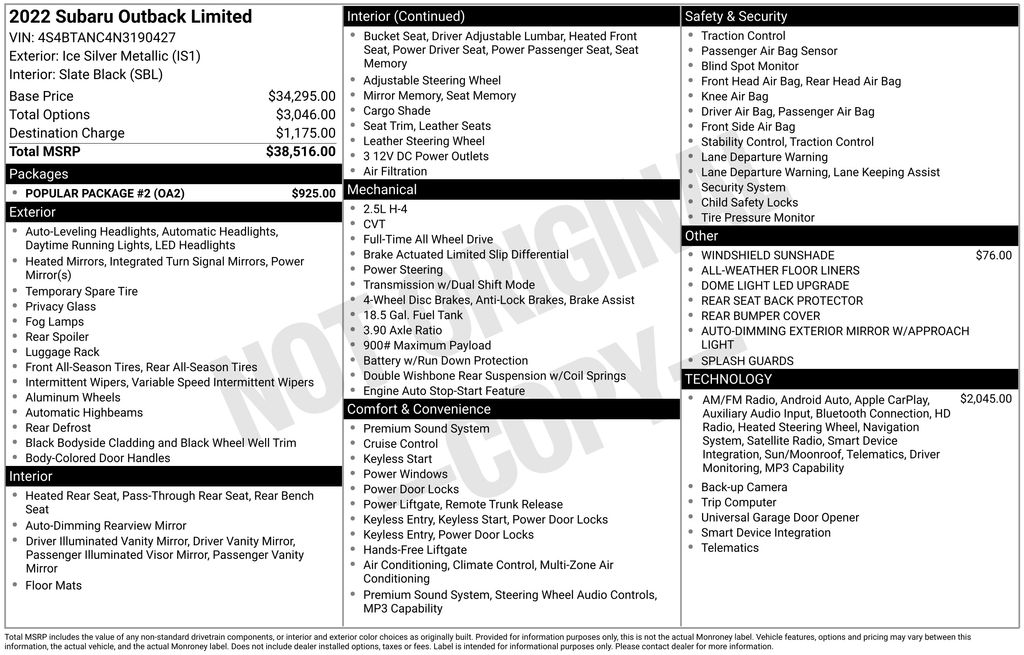 Whether you're embarking on a weekend getaway or tackling your daily commute, this 2022 Subaru Outback Limited is the perfect blend of capability, technology, and comfort. Experience the difference for yourself by scheduling a test drive today. We're confident you'll be impressed by everything this exceptional vehicle has to offer.
