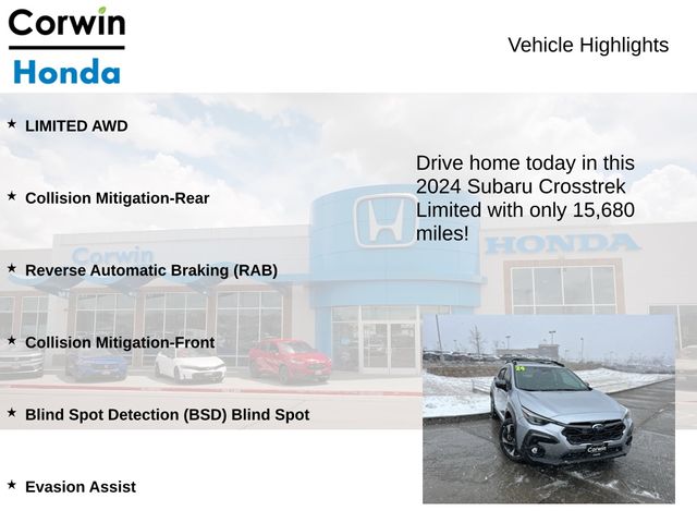 Priced below KBB Fair Purchase Price! 2024 Ice Silver Metallic Subaru Crosstrek Limited