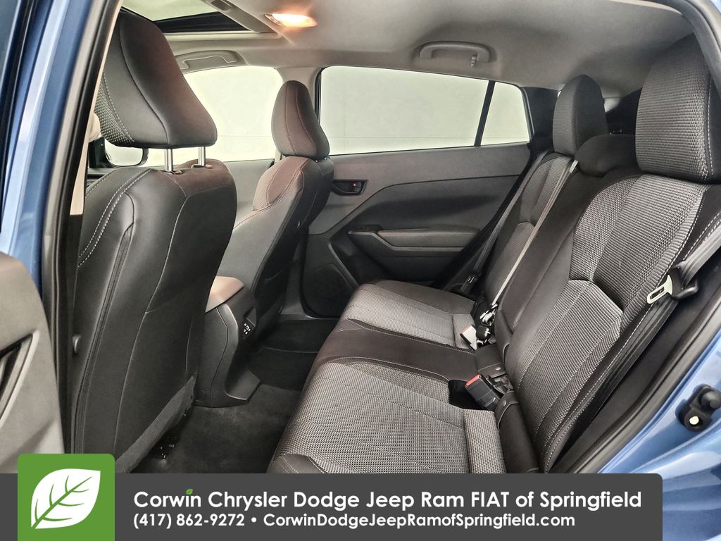 The Crosstrek Premium goes above and beyond with additional enhancements like Blind Spot Detection with Rear Cross-Traffic Alert, a power driver's seat, and an all-weather package that includes heated exterior mirrors, heated front seats, and heated wipers. The power moonroof and alloy wheels add a touch of refinement to this versatile SUV.