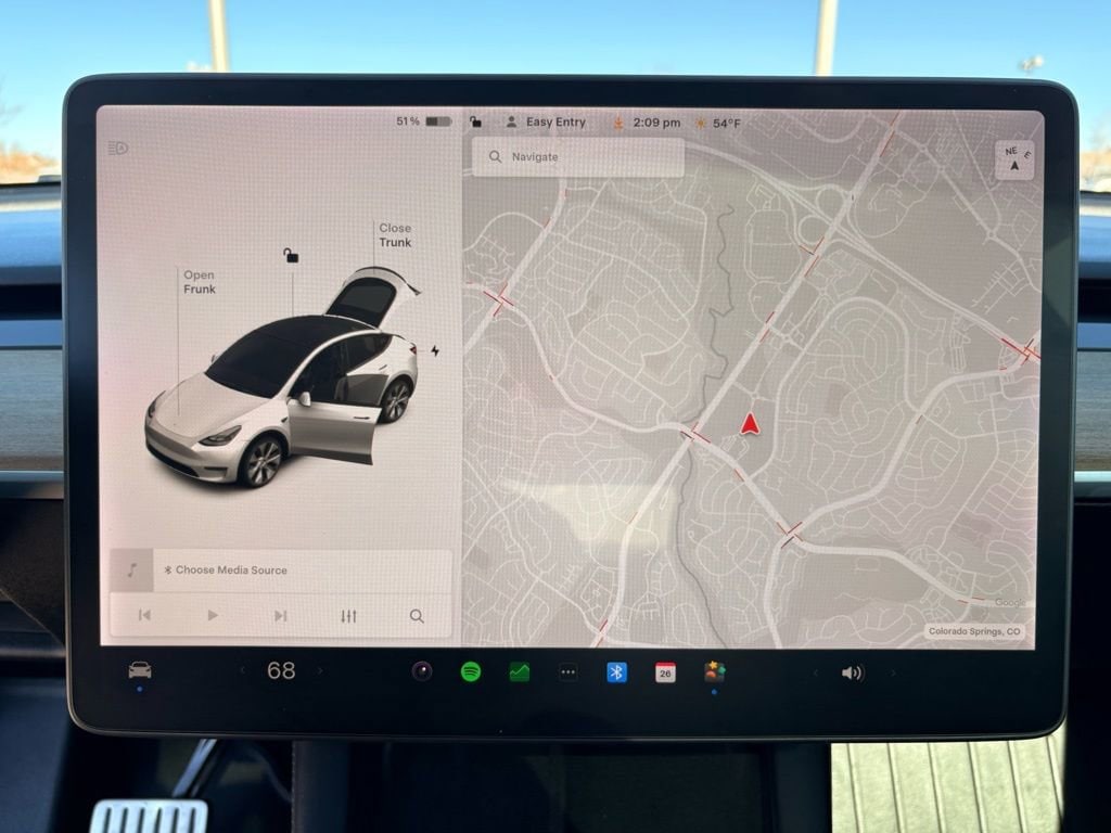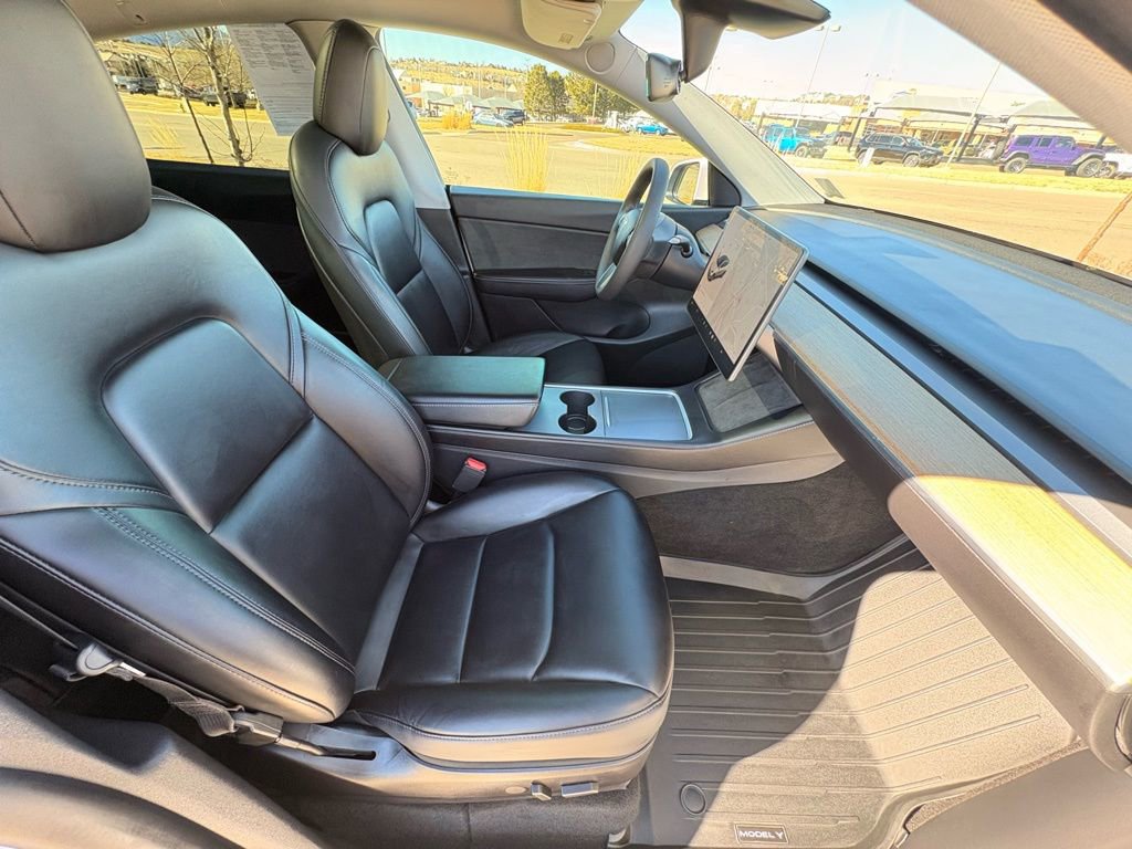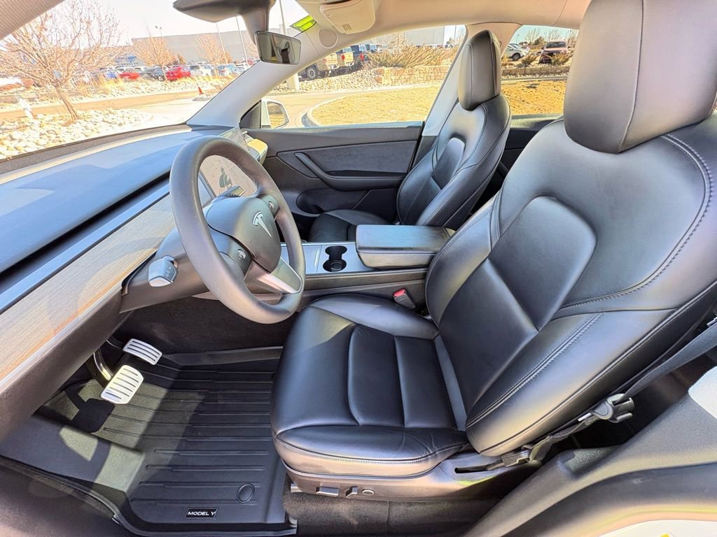 Stepping inside, you'll be greeted by a spacious, well-appointed cabin that prioritizes comfort and convenience. The premium seat trim, heated front and rear seats, and power-adjustable driver's seat ensure a personalized driving experience. The panoramic glass roof and ample cargo space further enhance the Model Y's versatility, making it the perfect companion for your adventures.