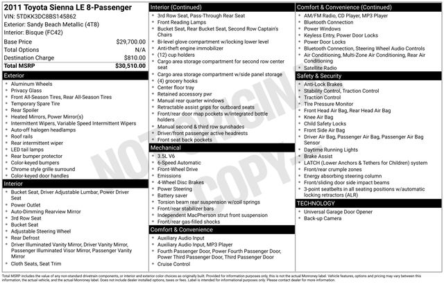 This 2011 Toyota Sienna LE is a versatile and well-equipped family minivan that offers exceptional value and convenience. With its spacious interior, advanced features, and reliable performance, this Sienna is the perfect choice for those seeking a practical and comfortable vehicle to accommodate their busy lifestyles.