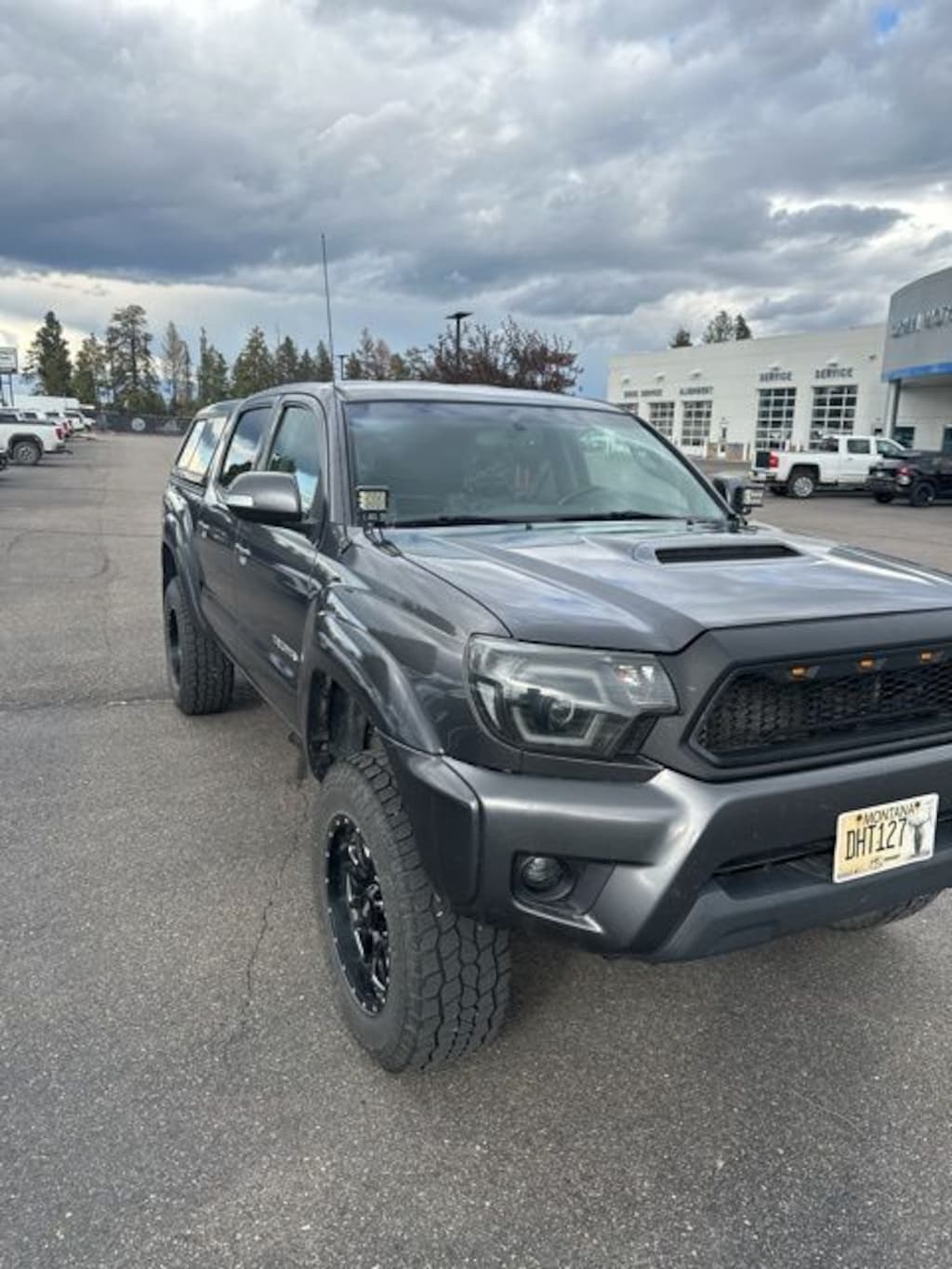 Built for action, our One Owner 2013 Toyota Tacoma Double Cab V6 4X4 shown in Magnetic Gray Metallic has brains and brawn. Motivated by a 4.0 Liter V6 producing 236hp paired with a 5 Speed Automatic transmission for easy passing. This Four Wheel Drive truck attains nearly 21mpg on the highway and offers the perfect blend of size and capability; this sure-footed truck can handle your every adventure. Our Double Cab V6 has a reputation for looking good and working hard. With a bold grille and aggressive stance, this athletic truck means business. You'll appreciate the convenience of a body-color topper, running boards, custom wheels, and a bed utility rail system.