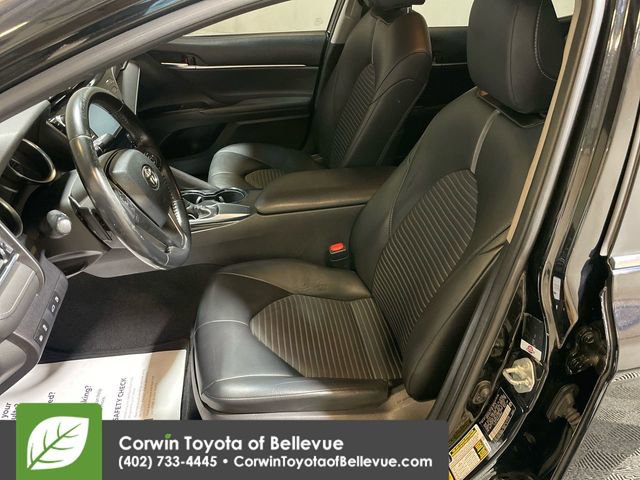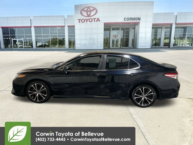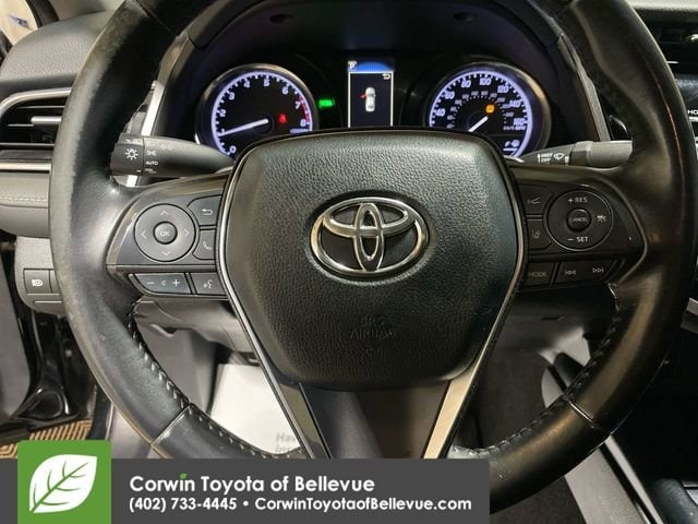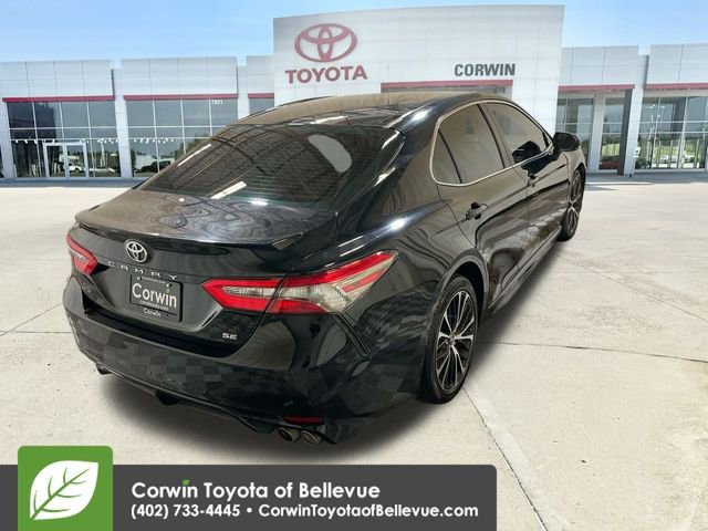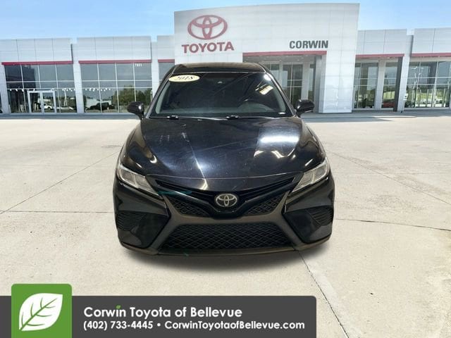 Add some driving pleasure to your day with our fantastic, Accident Free 2018 Toyota Camry SE Sedan offered in amazing Midnight Black Metallic! Powered by a 2.5 Liter 4 Cylinder that offers 203hp paired with an 8 Speed Automatic transmission. Emulating driving passion while providing nearly 39mpg on the highway, you will be impressed with the powerful acceleration and handling of this Front Wheel Drive sedan. The exterior is accented by its sleek shape, black front grille with a sporty mesh insert, distinct black machined-finish alloy wheels, and unique rear spoiler.