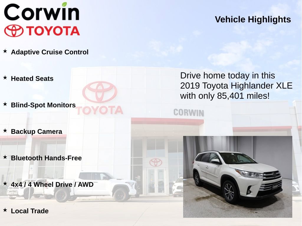 2019 Blizzard Pearl Toyota Highlander XLE Clean CARFAX.