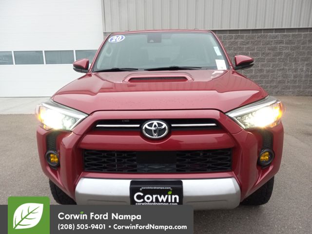 Take the reins of our 2020 Toyota 4Runner TRD Off-Road Premium 4WD, and you'll be ready to ride in Barcelona Red Metallic! Driven by a 4.0 Liter V6 offering 270hp paired to a 5 Speed Automatic transmission for power on demand. Our Four Wheel Drive SUV has features like Multi-terrain Select, Crawl Control, and an electronically controlled locking rear differential for trail work, and it scores nearly 19mpg on the highway. Our 4Runner is an active attention-getter with mudguards, skid plates, TRD badges, roof rails, LED lighting, and alloy wheels for a rugged, functional look.