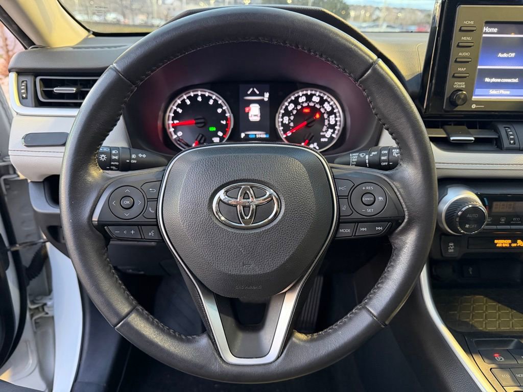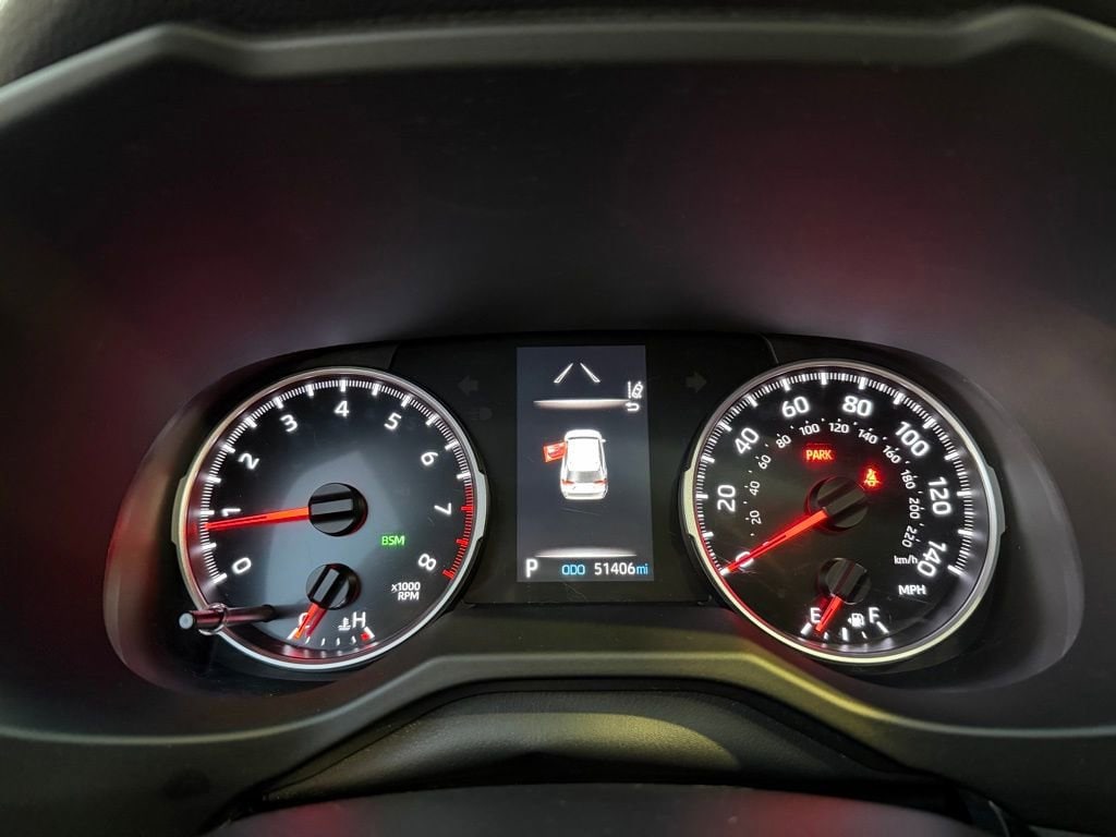 This Toyota RAV4 is well equipped and includes the following features and benefits, Toyota Safety Sense, Toyota Safety Sense (TSS) 2.0 Lane Change Assist (LCA)/Lane Tracing Assist (LTA) Cruise Control-Steering Assist Side Impact Beams Dual Stage Driver And Passenger Seat-Mounted Side Airbags Lane Tracing Assist (LTA) Low Tire Pressure Warning Dual Stage Driver And Passenger Front Airbags Curtain 1st And 2nd Row Airbags Airbag Occupancy Sensor Driver Knee Airbag and Passenger Cushion Front Airbag Rear Child Safety Locks Outboard Front Lap And Shoulder Safety Belts -inc: Rear Center 3 Point, Height Adjusters and Pretensioners Back-Up Camera, Auto On/Off Aero-Composite Led Low/High Beam Daytime Running Auto High-Beam Headlamps w/Delay-Off Laminated Glass Headlights-Automatic Highbeams Fixed Rear Window w/Wiper and Defroster Fixed Rear Window w/Yes Wiper and Defroster Auto On/Off Reflector Led Low/High Beam Daytime Running Auto High-Beam Headlamps w/Delay-Off Tires: 235/55R19 Wheels: 19" Multi-Spoke Super Chrome Alloy Clearcoat Paint LED Brakelights Body-Colored Front Bumper w/Black Rub Strip/Fascia Accent Black Rear Bumper w/Black Rub Strip/Fascia Accent Steel Spare Wheel Black Bodyside Cladding and Black Wheel Well Trim Chrome Side Windows Trim and Black Front Windshield Trim Body-Colored Door Handles Body-Colored Power Heated Side Mirrors w/Manual Folding and Turn Signal Indicator Fixed Rear Window w/Fixed Interval Wiper and Defroster Deep Tinted Glass Galvanized Steel/Aluminum Panels Lip Spoiler Black Grille w/Body-Color Surround, Air Filtration 2 12V DC Power Outlets Outside Temp Gauge 1 Seatback Storage Pocket Front Center Armrest and Rear Center Armrest Manual Adjustable Front Head Restraints and Manual Adjustable Rear Head Restraints Analog Appearance Driver Information Center Systems Monitor Remote Releases -Inc: Mechanical Fuel Leatherette Door Trim Insert Leather/Aluminum Gear Shifter Material Trunk/Hatch Auto-Latch FOB Controls -inc: Cargo Access Seats w/Leatherette Back Material Adaptive w/Traffic Stop-Go Full-Speed Range Dynamic Radar Cruise Control (DRCC) FOB Controls -inc: Keyfob Cargo Access Cargo Space Lights Dual Zone Front Automatic Air Conditioning Front Map Lights Full Floor Console w/Covered Storage, Mini Overhead Console w/Storage and 2 12V DC Power Outlets Driver And Passenger Visor Vanity Mirrors w/Driver And Passenger Auxiliary Mirror Day-Night Rearview Mirror Full Cloth Headliner Interior Trim -inc: Metal-Look Interior Accents Driver Foot Rest Glove Box HVAC -inc: Underseat Ducts and Console Ducts Instrument Panel Bin, Driver And Passenger Door Bins Distance Pacing w/Traffic Stop-Go Cruise Control w/Steering Wheel Controls Rear Cupholder Front Cupholder Manual Tilt/Telescoping Steering Column 60-40 Folding Split-Bench Front Facing Manual Reclining Fold Forward Seatback Rear Seat. Odometer is 7253 miles below market average! 28/35 City/Highway MPG