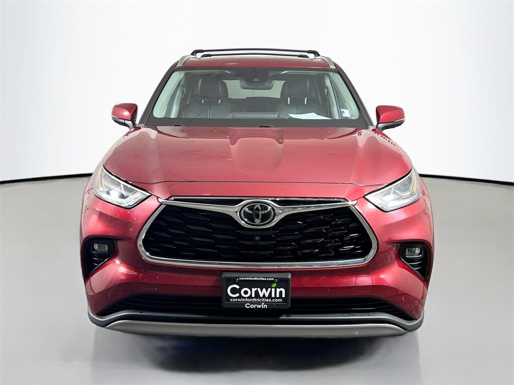 Our Accident Free, One Owner, Low Mileage 2022 Toyota Highlander Platinum AWD is rugged, refined, and ready to serve your family well in Ruby Flare Pearl! Motivated by a 3.5 Liter V6 providing 295hp paired with an 8 Speed Automatic transmission for pushing your boundaries to their limits. This All Wheel Drive SUV also excels at long road trips, scoring nearly 27mpg on the highway, and it's just as happy commuting, carting the kids to school, or cruising downtown. You'll be looking good almost everywhere, thanks to our Highlander's adaptive LED lighting, high-output fog lamps, a panoramic sunroof, a hands-free liftgate, and 20-inch alloy wheels.