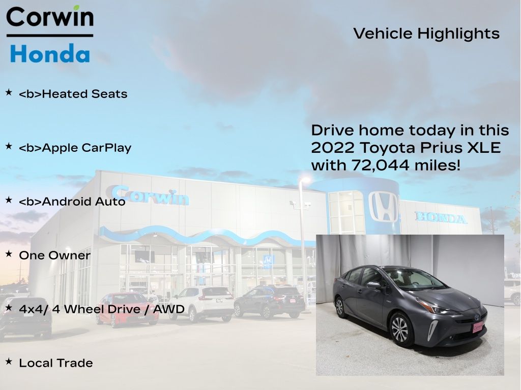 SAVE BIG IN 2026 WITH A GREAT DEAL ON ONE OF OVER 200 PRE-OWNED VEHICLE'S AT CORWIN HONDA. Recent Arrival! 2022 Magnetic Gray Metallic Toyota Prius XLE AWD-e AWD CARFAX One-Owner. Clean CARFAX.