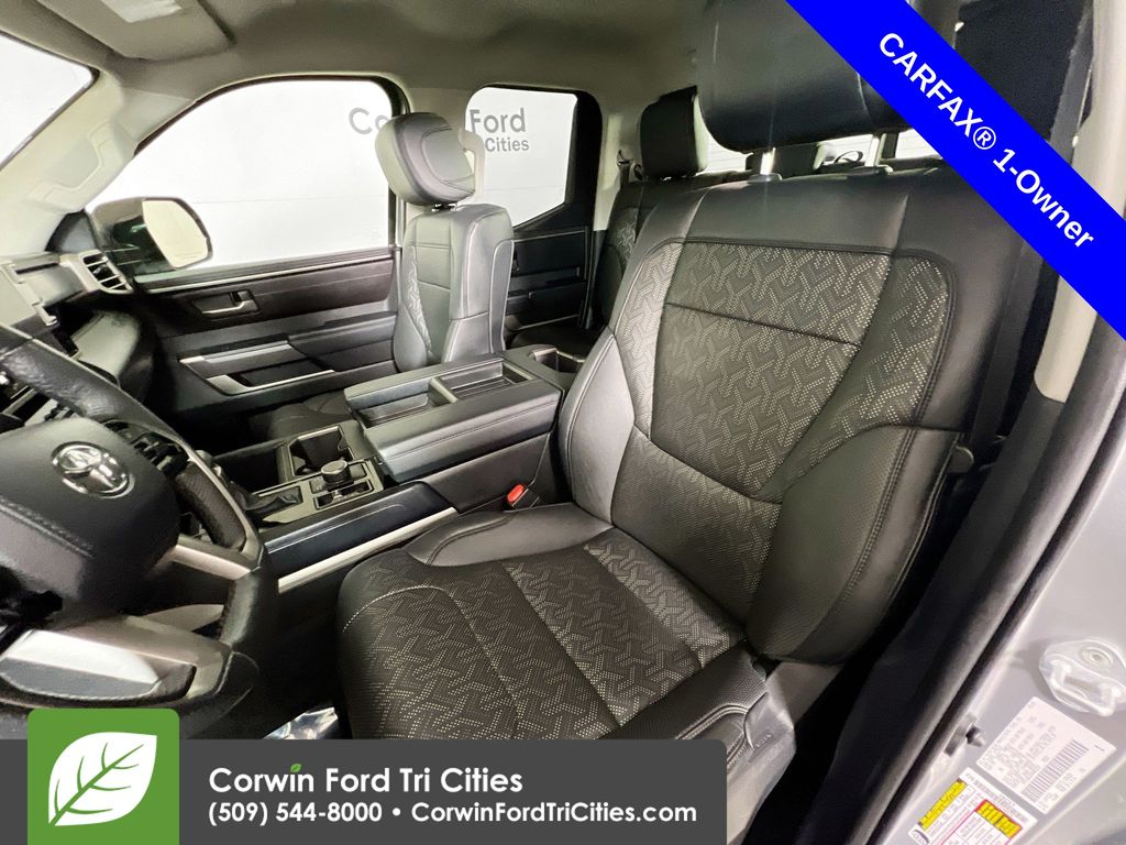 Take our Accident Free, One Owner, Low Mileage 2022 Toyota Tundra SR5 Double Cab 4X4 for a ride and enjoy its bold capability in Celestial Silver Metallic! Powered by a Twin-TurboCharged 3.5 Liter i-FORCE V6 delivering 389hp tethered to a 10 Speed Automatic transmission with tow/haul mode to maximize your pulling potential. This Four Wheel Drive truck also features responsive handling for confident capability, and it scores nearly 23mpg on the highway. A muscular and dramatic design adds flair to our Tundra with a bold grille, LED lighting, fog lamps, heated power mirrors, a tow hitch, an easy lift/lower tailgate, an aluminum-reinforced composite bed, and 18-inch alloy wheels.