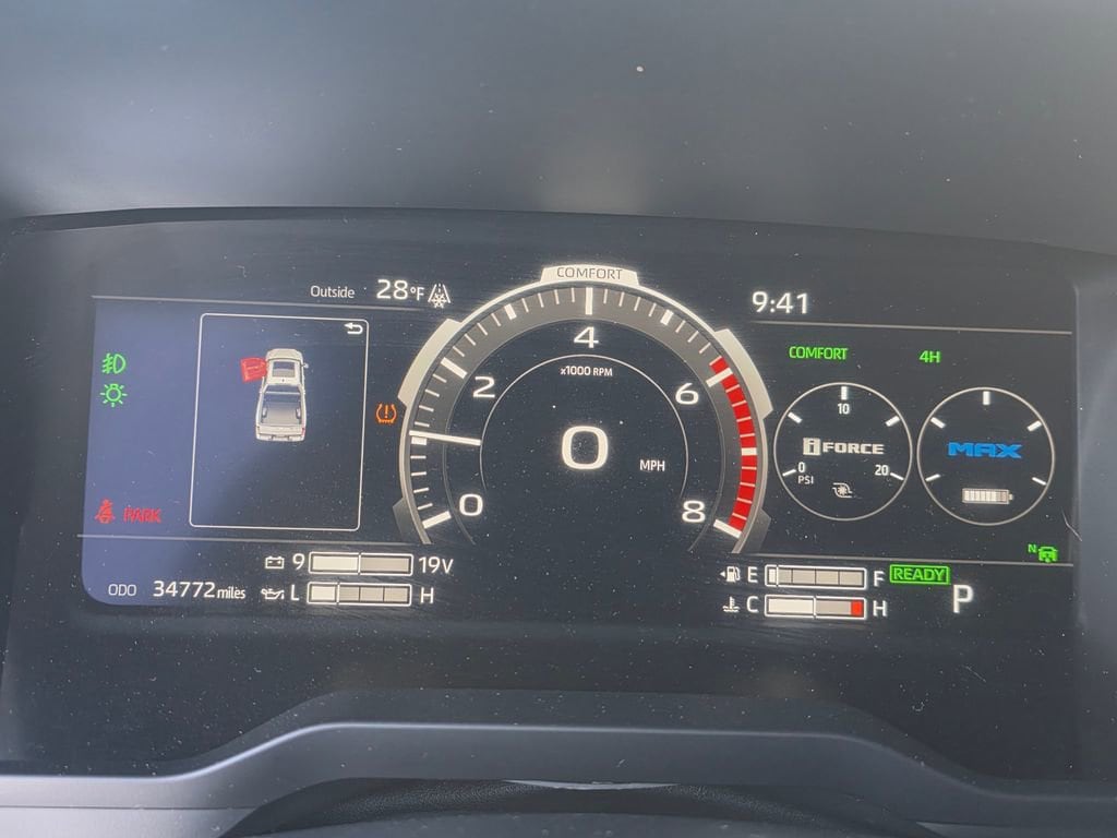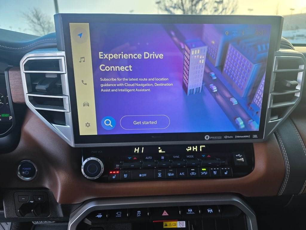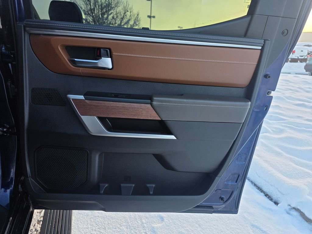 This Toyota Tundra Hybrid is well equipped and includes the following features and benefits, Advanced Package, Power running boards and power bed step, 14-in Audio Multimedia, with 12 Speaker JBL Premium Audio including subwoofer and amplifier,and wireless Apple CarPlay and Android Auto capability. SiriusXM w/3-Month Platinum Plan Trial, Leather-Trimmed 10-Way Power-Adjustable Driver/FR-Pass Seat w/4-way Power Lumbar, Heated and Ventilated Front & Rear Seats, Power Tilt/Slide Panoramic Roof, Advanced Package, Color Head Up Display, Load-Leveling Rear Height Control Air Suspension. Odometer is 7676 miles below market average!