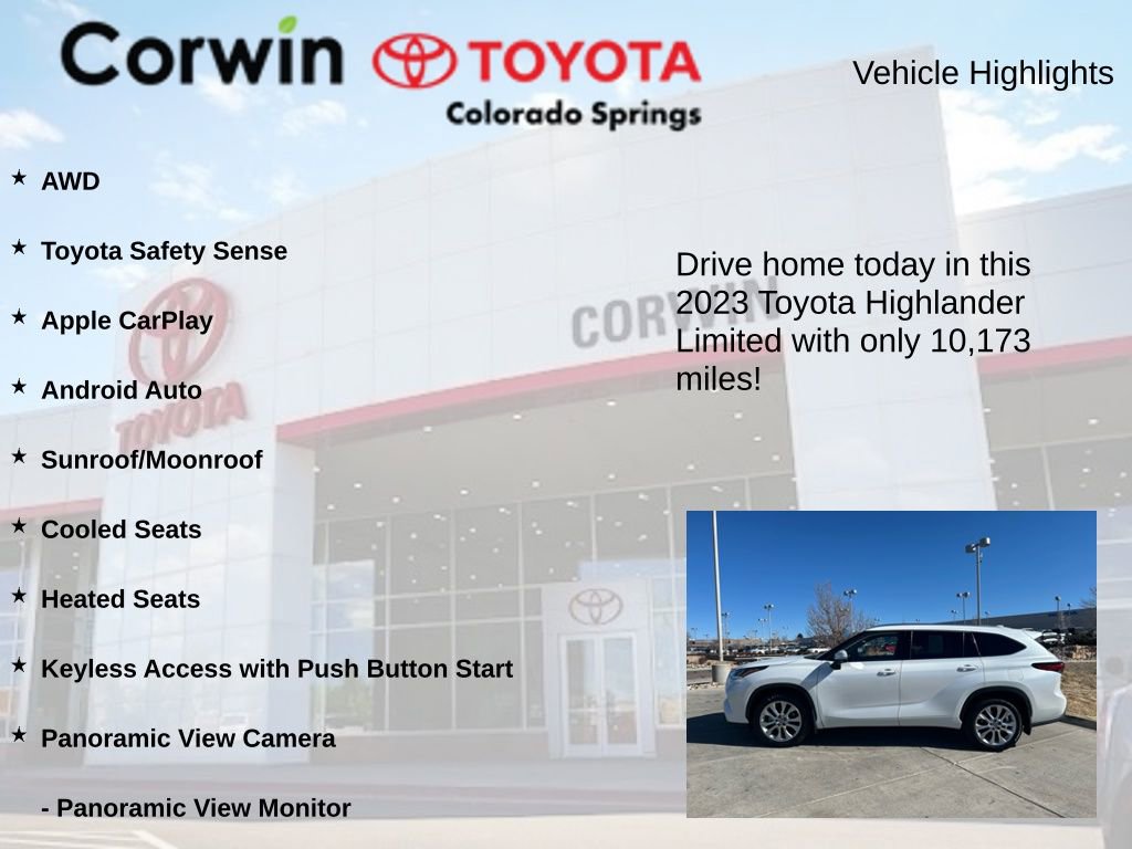 Experience the pinnacle of style and capability with this exceptional 2023 Toyota Highlander Limited. This meticulously maintained SUV is a true testament to Toyota's commitment to quality and innovation, offering a refined driving experience that will captivate you from the moment you take the wheel.
