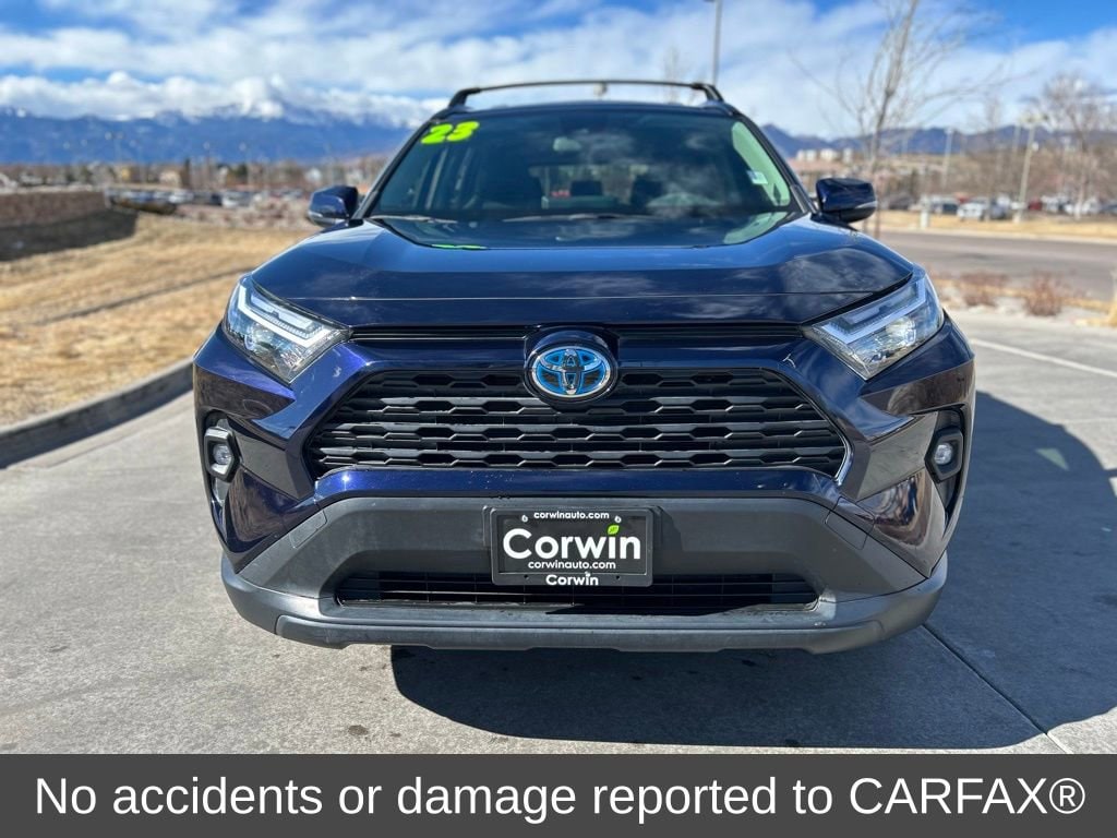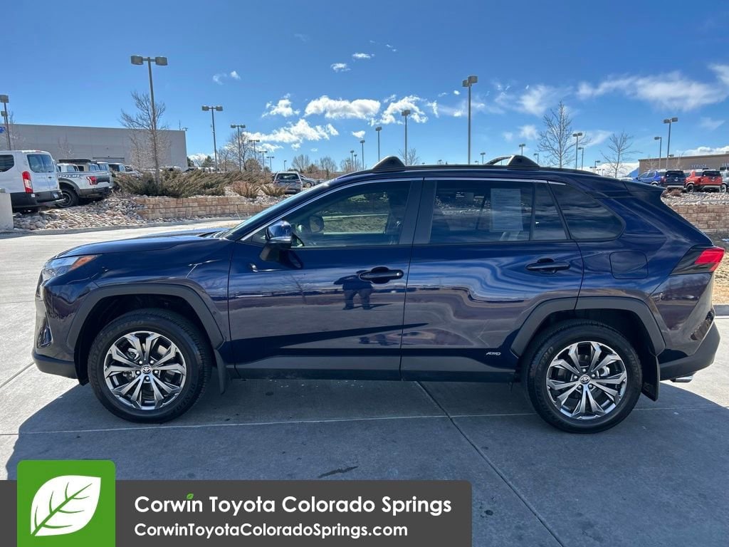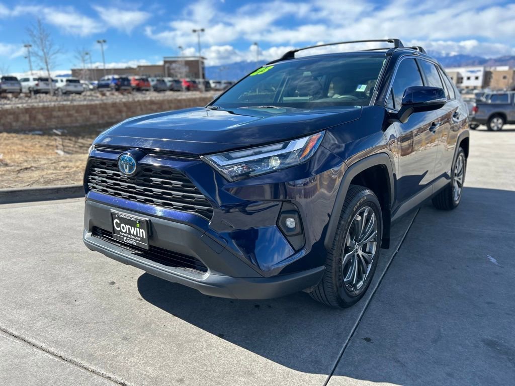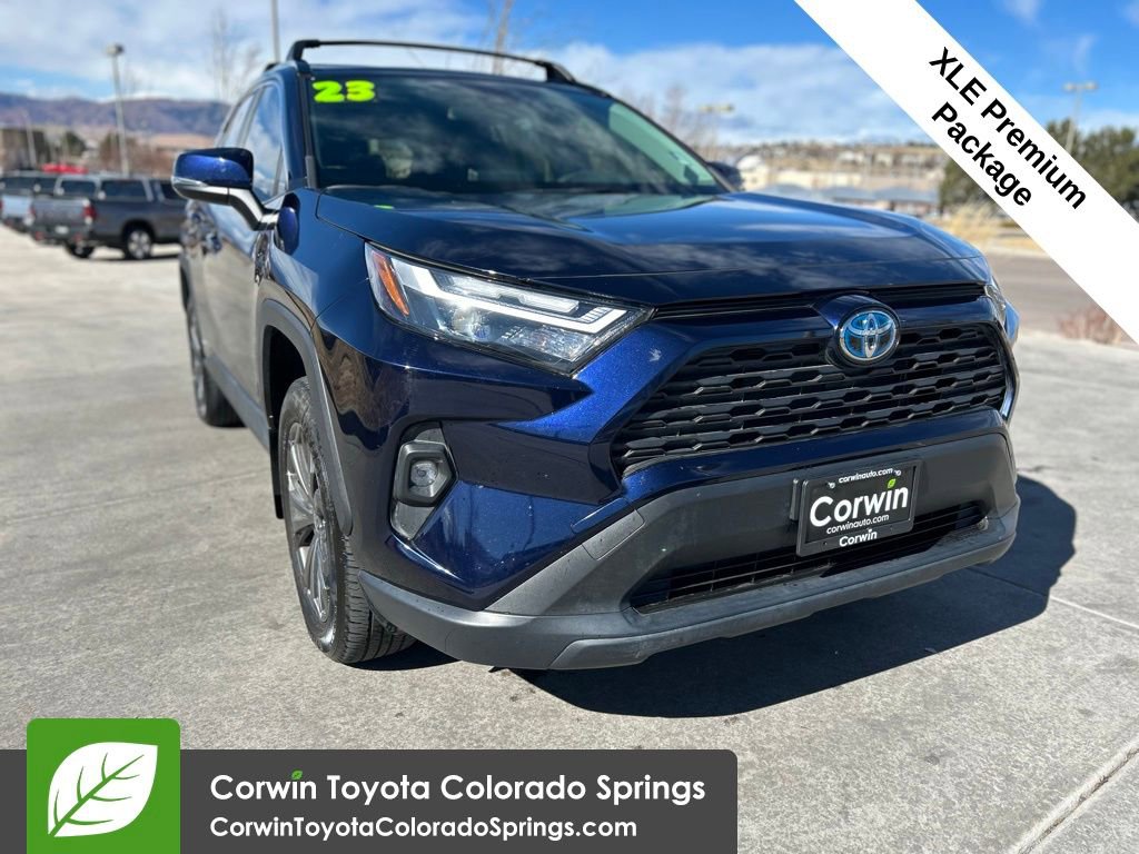 Experience the epitome of modern, eco-friendly driving with this stunning 2023 Toyota RAV4 Hybrid XLE Premium. This meticulously maintained SUV boasts a sleek blue exterior and a wealth of premium features that elevate your driving experience.