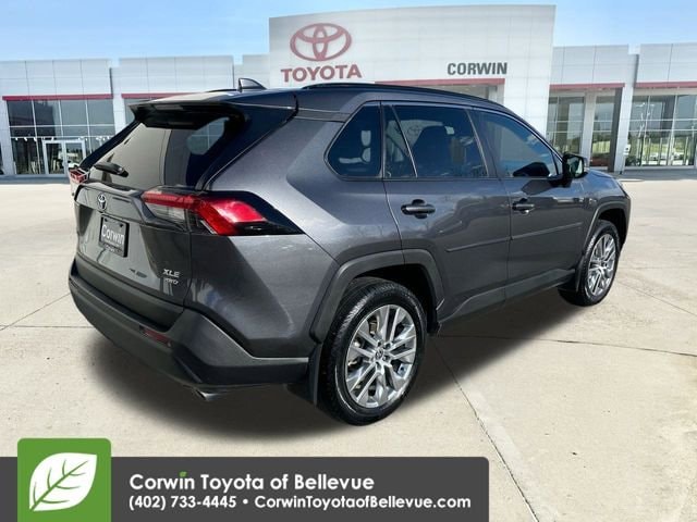Fearlessly face adventure in our One Owner 2023 Toyota RAV4 XLE Premium AWD with the Weather Pack that has a bold presence in Magnetic Gray Metallic! Powered by a 2.5 Liter Dynamic Force 4 Cylinder that serves up 203hp to an 8 Speed Automatic transmission so you can get a jump on your next journey. This All Wheel Drive SUV also moves with sure-footed traction to boost your confidence, and it sees nearly 34mpg on the highway. High-end details to help our RAV4 turn heads include 19-inch Super Chrome wheels, LED lighting, fog lamps, a power sunroof, and a height-adjustable power liftgate.