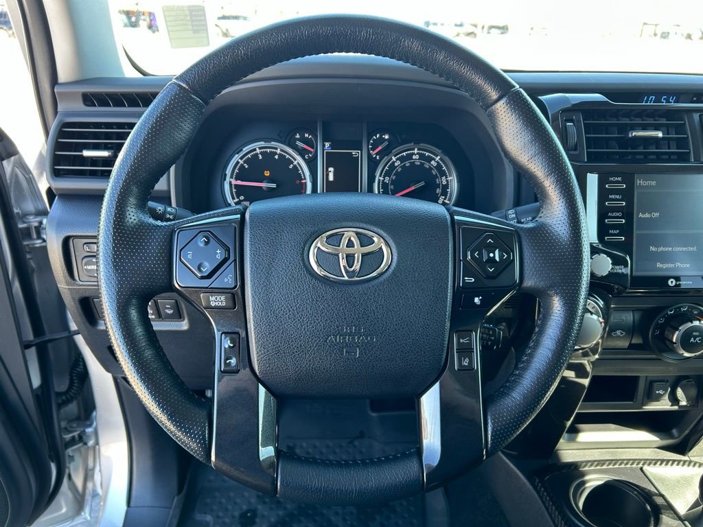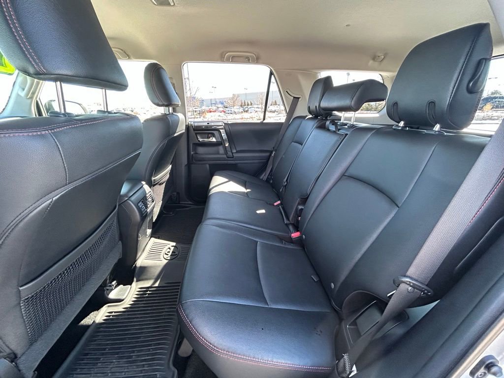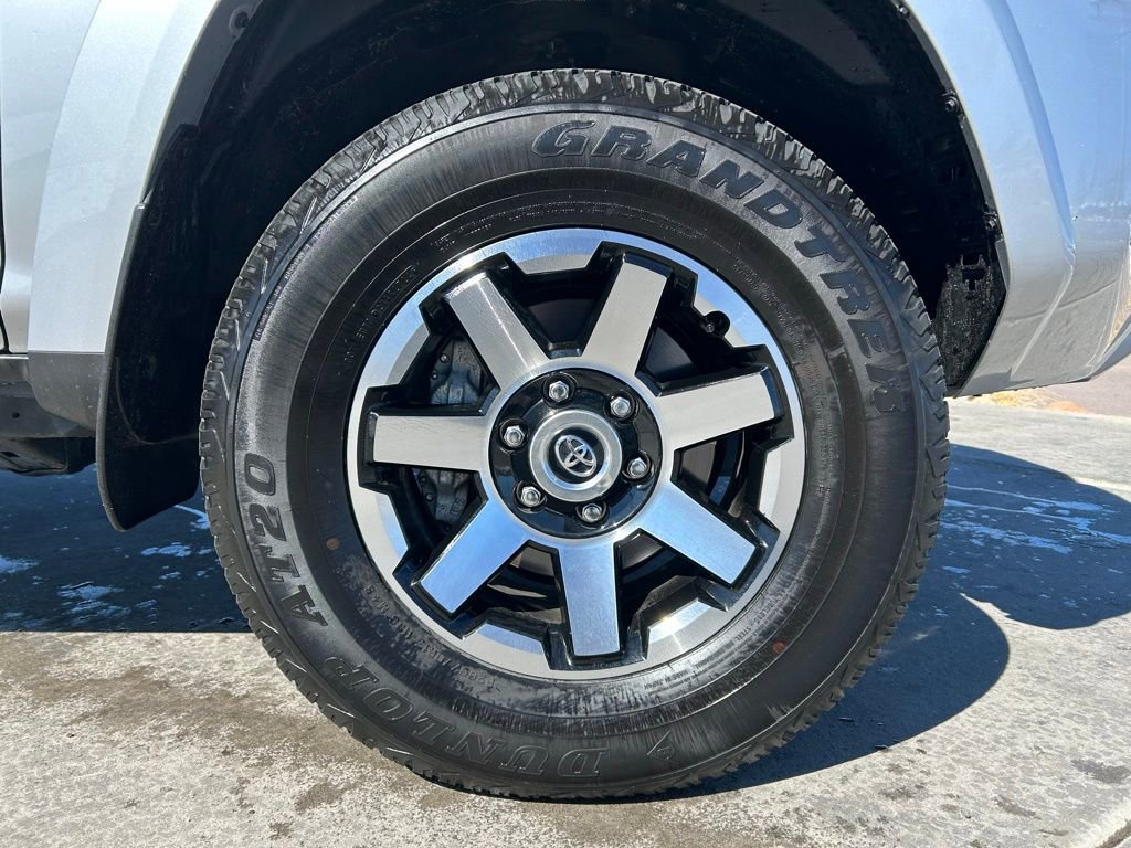 The striking exterior of the 4Runner TRD Off-Road Premium is complemented by its sleek Silver color and bold Black Roof Rails, creating a dynamic and eye-catching appearance. Step inside and you'll be greeted by the premium SofTex Seat Trim, adding a touch of sophistication to the cabin.