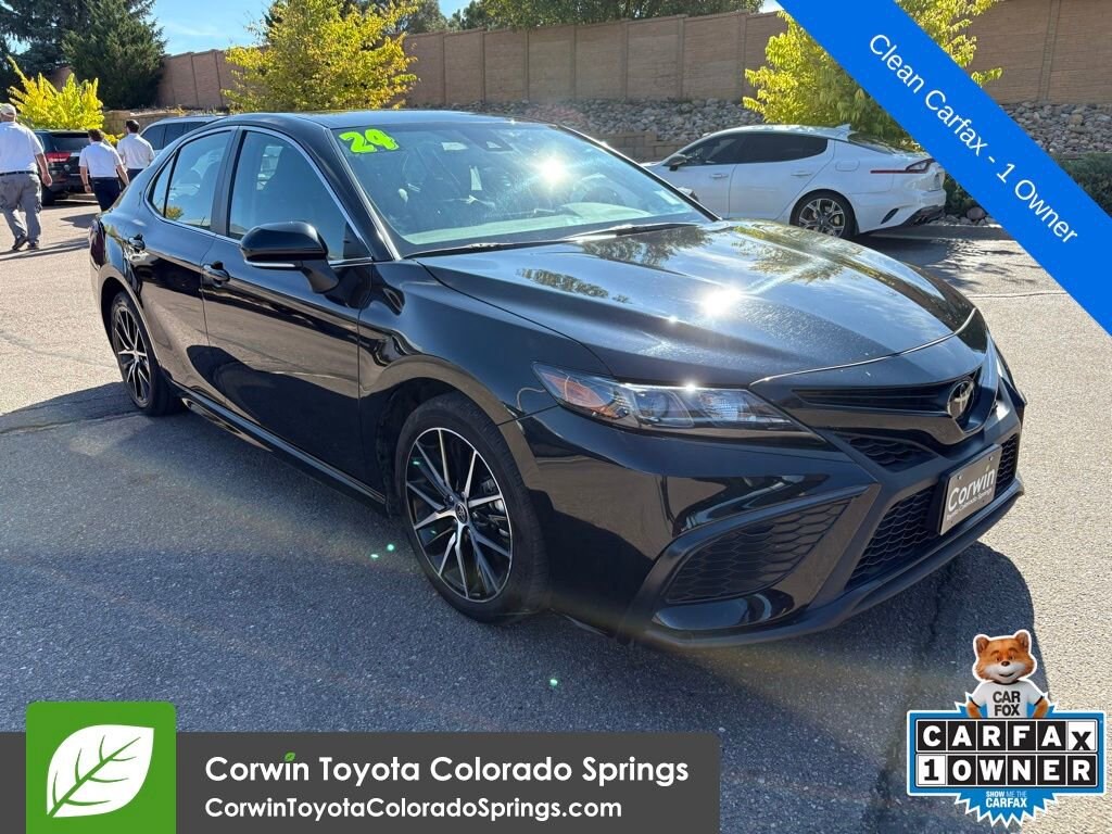 2024 Midnight Black Metallic Toyota Camry SE CARFAX One-Owner. Clean CARFAX.