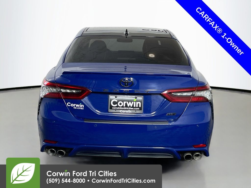 Our muscular 2024 Toyota Camry XSE V6 Sedan in Reservoir Blue is no ordinary midsize car! Powered by a 3.5 Liter V6 serving up 301hp to a paddle-shifted 8 Speed Automatic transmission for remarkable road authority. You can also tame tight corners with the sport-tuned suspension, and this Front Wheel Drive sedan scores nearly 32mpg on the highway. Anything but dull, our Camry's exterior excites the senses with a panoramic sunroof, LED lighting, color-keyed rocker panels, a rear spoiler, 19-inch gloss-black wheels, and dual exhaust with quad chrome tips.