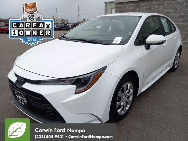 Our Accident Free, One Owner 2024 Toyota Corolla LE Sedan helps you carry on with confidence and style in Ice Cap! Motivated by a 2.0 Liter 4 Cylinder providing 169hp to a CVT for keeping up with busy days. Known for its agile handling, this Front Wheel Drive sedan achieves nearly 41mpg on the highway with an athletic design. Our Corolla commands the road with LED lighting, a sport black grille, and an aggressive stance. Toyota hit a home run with this bold appearance!