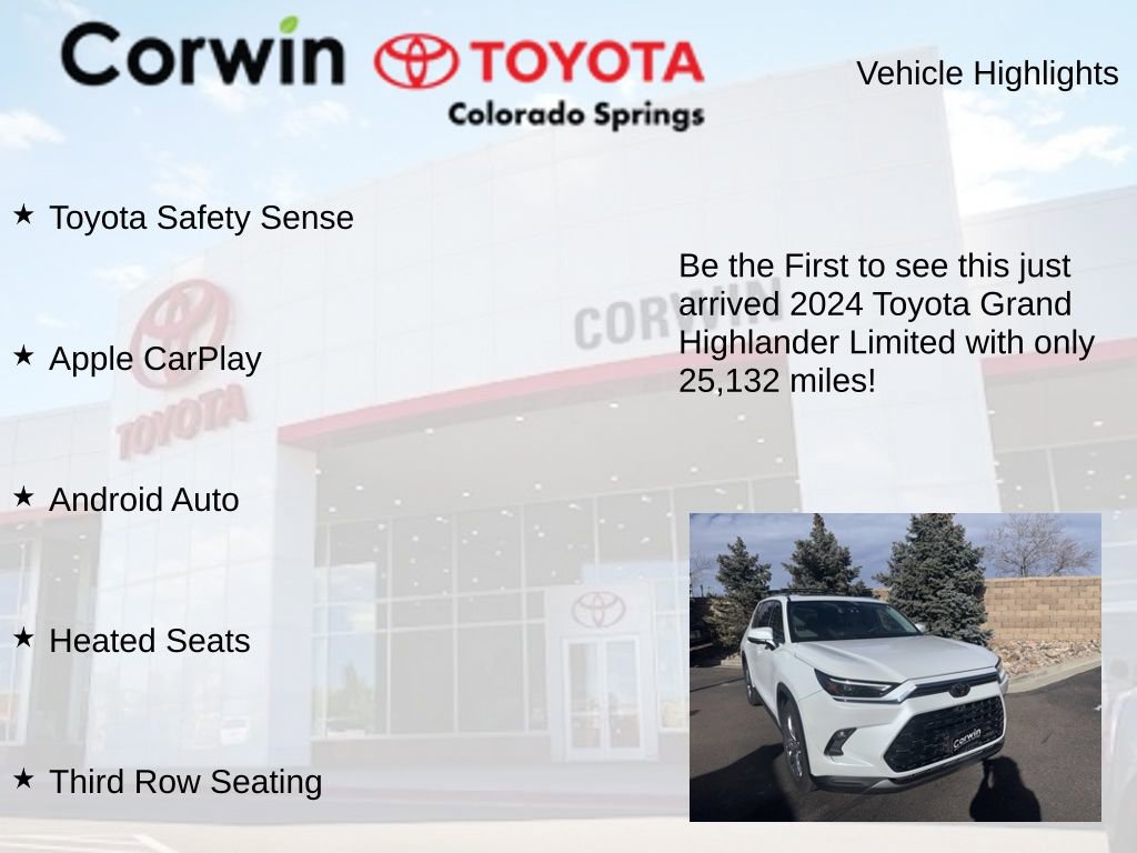 Elevate your driving experience with this exceptional 2024 Toyota Grand Highlander Limited. This versatile and well-appointed SUV offers the perfect blend of style, comfort, and advanced technology to enhance your daily commute and weekend adventures.