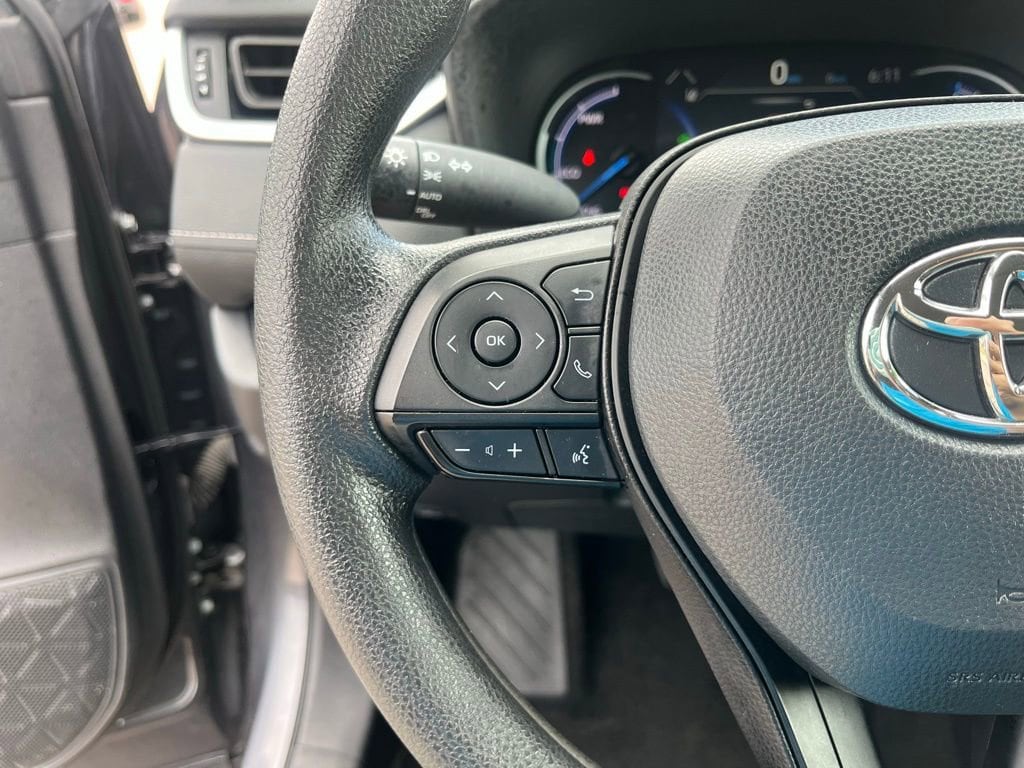 This Toyota RAV4 Hybrid is well equipped and includes the following features and benefits, Rear Cross-Traffic Alert (RCTA) Pre-Collision System (PCS) w/Intersection Support Lane Change Assist (LCA)/Lane Tracing Assist (LTA) Dual Stage Driver And Passenger Front Airbags Outboard Front Lap And Shoulder Safety Belts -inc: Rear Center 3 Point, Height Adjusters and Pretensioners Back-Up Camera Lane Tracing Assist (LTA) Side Impact Beams Dual Stage Driver And Passenger Seat-Mounted Side Airbags Collision Mitigation-Front Pre-Collision System (PCS) w/Intersection Support and Rear Cross-Traffic Alert (RCTA) Blind Spot Monitor (BSM) Blind Spot Low Tire Pressure Warning Curtain 1st And 2nd Row Airbags Airbag Occupancy Sensor Driver Knee Airbag and Passenger Cushion Front Airbag Rear Child Safety Locks, Compact Spare Tire Mounted Inside Under Cargo Body-Colored Front Bumper w/Black Rub Strip/Fascia Accent Black Rear Bumper w/Black Rub Strip/Fascia Accent Black Bodyside Cladding and Black Wheel Well Trim Chrome Side Windows Trim and Black Front Windshield Trim Body-Colored Door Handles Body-Colored Power Heated Side Mirrors w/Manual Folding and Turn Signal Indicator Fixed Rear Window w/Fixed Interval Wiper and Defroster Deep Tinted Glass Variable Intermittent Wipers Galvanized Steel/Aluminum Panels Lip Spoiler Black Grille w/Body-Color Surround Liftgate Rear Cargo Access Roof Rack Rails Only LED Brakelights Headlights-Automatic Highbeams Auto On/Off Projector Beam Led Low/High Beam Daytime Running Auto High-Beam Headlamps w/Delay-Off Laminated Glass Steel Spare Wheel Tires: 225/65R17 AS Wheels: 17" x 7.0J Silver Aluminum Alloy Non-Metallic Paint Fixed Rear Window w/Yes Wiper and Defroster Fixed Rear Window w/Wiper and Defroster, Full Carpet Floor Covering Manual Tilt/Telescoping Steering Column Urethane Gear Shifter Material Interior Trim -inc: Metal-Look Instrument Panel Insert and Metal-Look Interior Accents Day-Night Rearview Mirror Driver And Passenger Visor Vanity Mirrors w/Driver And Passenger Illumination, Driver And Passenger Auxiliary Mirror Full Floor Console w/Covered Storage, Mini Overhead Console w/Storage and 2 12V DC Power Outlets Front Map Lights Fade-To-Off Interior Lighting Carpet Floor Trim Cargo Area Concealed Storage Roll-Up Cargo Cover Cargo Space Lights Smart Device Integration Safety Connect (1-year trial) Tracker System Cloth Door Trim Insert Instrument Panel Bin, Driver And Passenger Door Bins Delayed Accessory Power Driver Information Center Outside Temp Gauge Digital/Analog Appearance Seats w/Cloth Back Material Manual Adjustable Front Head Restraints and Manual Adjustable Rear Head Restraints Front Center Armrest and Rear Center Armrest 1 Seatback Storage Pocket Immobilizer 2 12V DC Power Outlets Air Filtration Full-Speed Range Dynamic Radar Cruise Control (DRCC) Adaptive w/Traffic Stop-Go Front Bucket Seats -inc: 8-way power driver w/lumbar and 4-way adjustable passenger seats Driver Foot Rest Front Sport Seats -inc: 8-way power driver w/lumbar and 4-way adjustable passenger seats. 41/38 City/Highway MPG