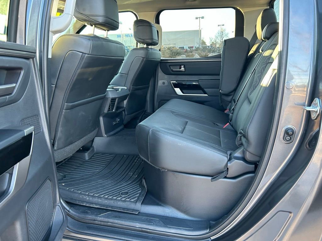 Step inside and be captivated by the Tundra's luxurious interior. The SofTex Seat Trim, Heated and Ventilated Front Seats, and Power Adjustable Seats provide unparalleled comfort. The Panoramic View Monitor and Multi-Terrain Back Monitor enhance your driving visibility and safety. Stay connected with the intuitive Audio Multimedia System, complete with Apple CarPlay, Android Auto, and a premium JBL sound system.