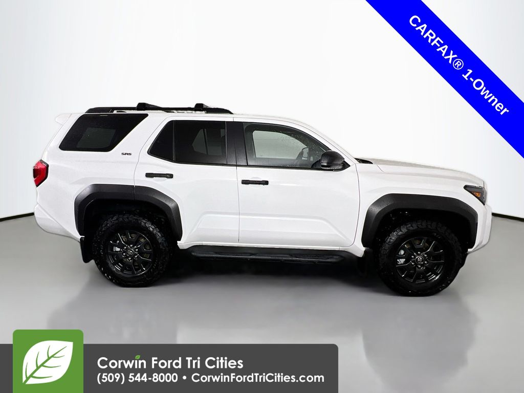 Our Accident Free, One Owner 2025 Toyota 4Runner SR5 4X4 is here to help you tame the wild world ahead in Wind Chill Pearl! Powered by a TurboCharged 2.4 Liter i-FORCE 4 Cylinder supplying 278hp to an 8 Speed Automatic transmission for bold body-on-frame capability. A 2-speed transfer case and active traction control help you push your limits even further, and this Four Wheel Drive SUV returns nearly 24mpg on the highway. Our 4Runner shows its fierce nature with LED lighting, fog lamps, roof rails, alloy wheels, running boards, a tow hitch receiver, and heated power mirrors. No wonder our 4Runner is the first choice of so many drivers!