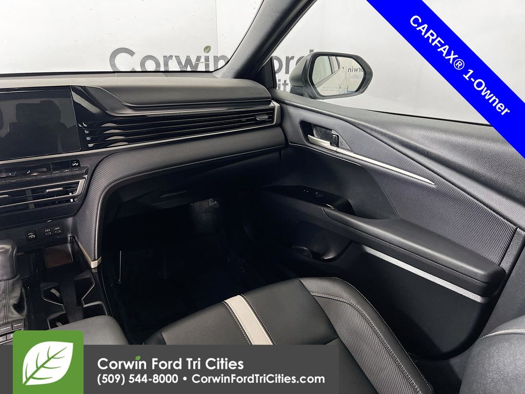 A dynamic performer, our Accident Free, One Owner 2025 Toyota Camry SE Sedan is designed for miles of smiles in Ice Cap! Motivated by a 2.5 Liter 4 Cylinder and 2 Electric Motors providing a combined 225hp to a paddle-shifted eCVT for gear changes on your command. This Front Wheel Drive sedan also features a sport-tuned suspension for quicker cornering, and it returns 47mpg in the city and nearly 48mpg on the highway. Athletically inspired Camry details like a black sport-mesh grille, racing-inspired front air curtains, dual chrome exhaust tips, a rear spoiler, a sport-style rear diffuser, LED lighting, and black alloy wheels can leave a lasting impression.