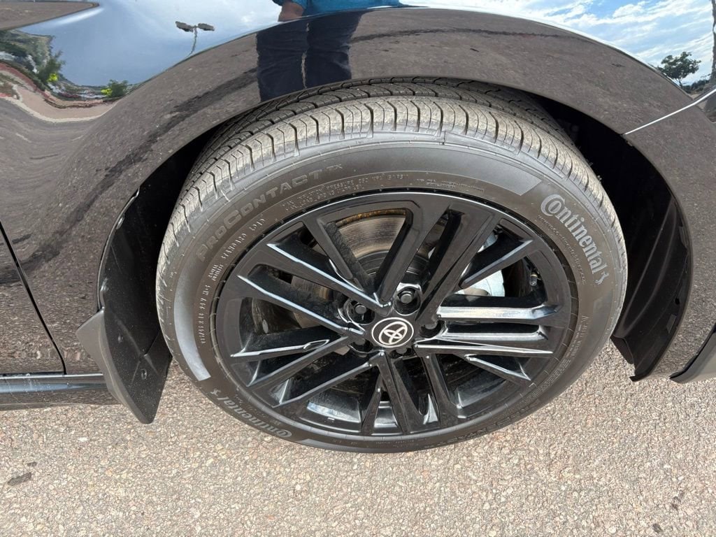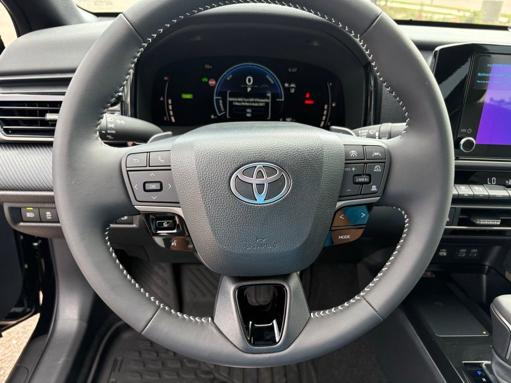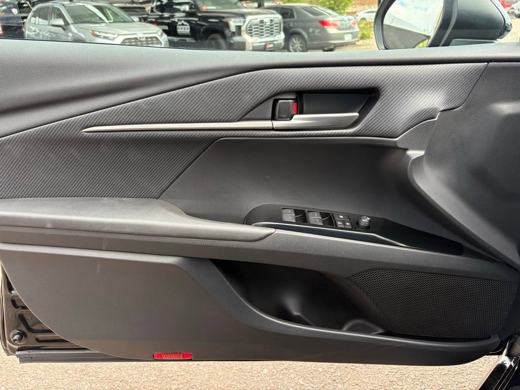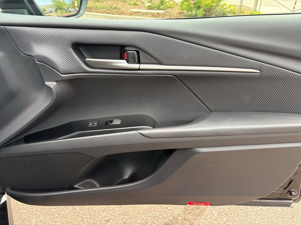 This Toyota Camry is well equipped and includes the following features and benefits, Power door locks with shift-linked automatic locking feature with anti-lockout feature Multi-function keyfob with remote entry system with lock, two-stage unlock, panic, trunk-release functions, Push Button Start with remote illuminated entry Push Button Start Dual zone automatic climate control with air filter, humidity sensor and rear-seat vents SofTex®- and fabric-trimmed front seats with seatback pockets; 8-way power-adjustable front driver's seat with power lumbar support; 6-way manual passenger front seat Leather-trimmed tilt/telescopic steering wheel with paddle shifters 7-in. Digital Gauge Cluster with selectable gauge display screens and fuel economy, Driver Assist, vehicle/trip information and warning messages Five USB ports: one USB-A media port and two USB-C charging ports up front, with one USB-A and one USB-C charging port in the rear One 12V auxiliary power outlet Qi-compatible wireless smartphone charging with charge indicator light Rearview mirror with manual day/night mode Aluminum sport pedals Leather-trimmed shift knob Two front and two rear cup holders; two front door and two rear bottle holders Covered center console, armrest and storage Passenger-side glove compartment Dual sun visors with sliding extensions and illuminated vanity mirrors Overhead console with sunglasses storage Rear window defogger and outside mirror heater function with timer Power windows with auto up/down, jam protection in all positions and retained-power features Electric Parking Brake (EPB) with Brake Hold function 6-speaker audio system 8-in. Toyota Audio Multimedia touchscreen with USB-A media port, hands-free phone capability and music streaming via Bluetooth® wireless technology, SiriusXM® 3-month trial subscription. See toyota.com/connected-services for details. Wireless Apple CarPlay® compatibility Wireless Android AutoTM compatibility, ollision sensors: deactivate high-voltage traction battery Predictive Fuel-Efficient Drive Backup camera with dynamic gridlines Toyota Safety SenseTM 3.0 (TSS 3.0) Pre-Collision System with Pedestrian Detection (PCS w/PD), Full-Speed Range Dynamic Radar Cruise Control (DRCC), Lane Departure Alert with Steering Assist (LDA w/SA), Lane Tracing Assist (LTA), Road Sign Assist (RSA), Automatic High Beams (AHB), Proactive Driving Assist (PDA) Child-protector rear door locks and power window lockout control LATCH (lower Anchors and Tethers for CHildren) includes lower anchors on outboard rear seats and tether anchors on all rear seats Eight airbags includes driver and front passenger airbag, driver and front passenger seat-mounted side airbags, driver and front passenger knee airbags, and front and rear side curtain airbags Rear-Seat Reminder Tire Pressure Monitor System (TPMS) with direct pressure readout and individual tire location alert Blind Spot Monitor (BSM) with Rear Cross-Traffic Alert (RCTA) and Safe Exit Alert (SEA) Star Safety SystemTM includes Enhanced Vehicle Stability Control (VSC), Traction Control (TRAC), Anti-lock Brake System (ABS), Electronic Brake-force Distribution (EBD), Brake Assist (BA) and Smart Stop Technology® (SST) Hill Start Assist Control (HAC) Anti-theft system with alarm and engine immobilizer, ABS brakes, Active Cruise Control, Alloy wheels, Electronic Stability Control, Front dual zone A/C, Heated door mirrors, Illuminated entry, Low tire pressure warning, Remote keyless entry, Traction control. Odometer is 24704 miles below market average!