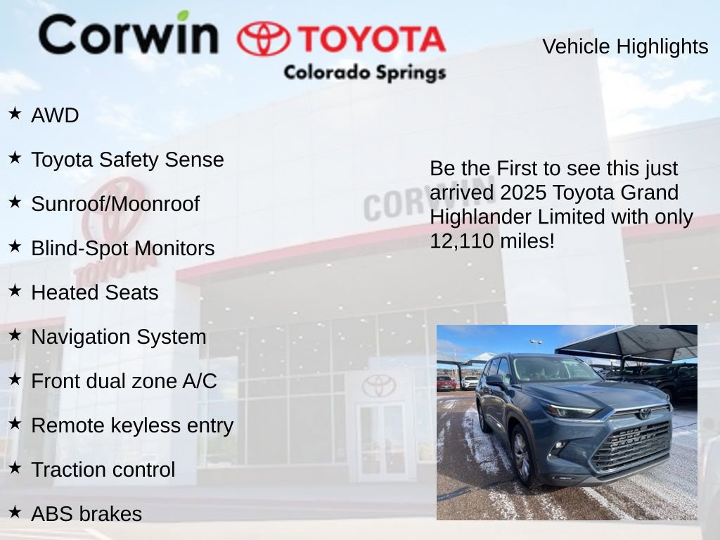 2025 Storm Cloud Toyota Grand Highlander Limited CARFAX One-Owner. Clean CARFAX.
