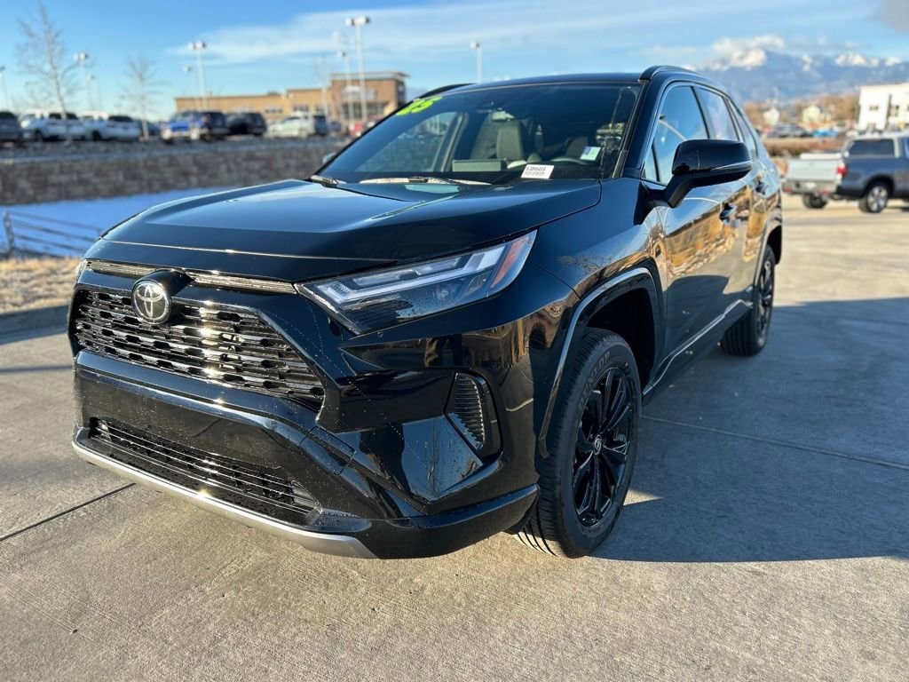 The RAV4 Hybrid SE's sophisticated design is complemented by a sleek Black exterior, creating a bold and modern presence on the road. Step inside and you'll be greeted by a wealth of advanced features, including Blind-Spot Monitors, Keyless Access with Push Button Start, and a premium audio system with SiriusXM radio.