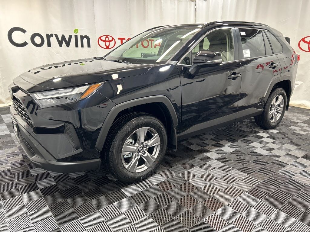 Built for bold journeys, our Accident Free 2025 Toyota RAV4 Hybrid XLE AWD in Midnight Black Metallic delivers rugged style, hybrid efficiency, and capability to add adventure and confidence to every drive! Powered by a 2.5 Liter 4 Cylinder and Dual Electric Motors serving up a combined 219hp to an eCVT with a Trail Mode for tricky terrain. This All Wheel Drive SUV also has Active Cornering Assist for capable handling, and it sees nearly 41mpg in the city. Rugged RAV4 design cues include a black grille, black fender moldings, LED lighting, chrome dual-tipped exhaust, low-profile roof rails, alloy wheels, and heated power mirrors.