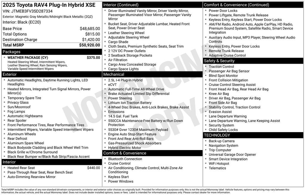 Experience the pinnacle of hybrid capability and sophisticated style with the 2025 Toyota RAV4 Plug-In Hybrid XSE. Visit our showroom today and let us demonstrate how this exceptional vehicle can elevate your driving experience.