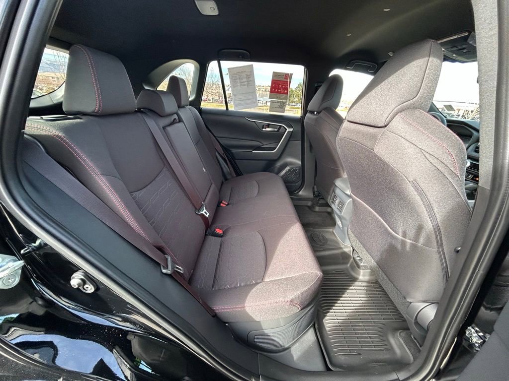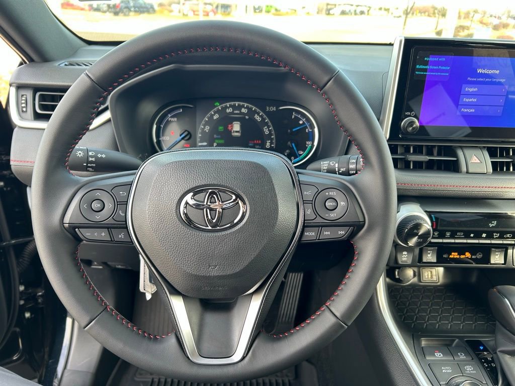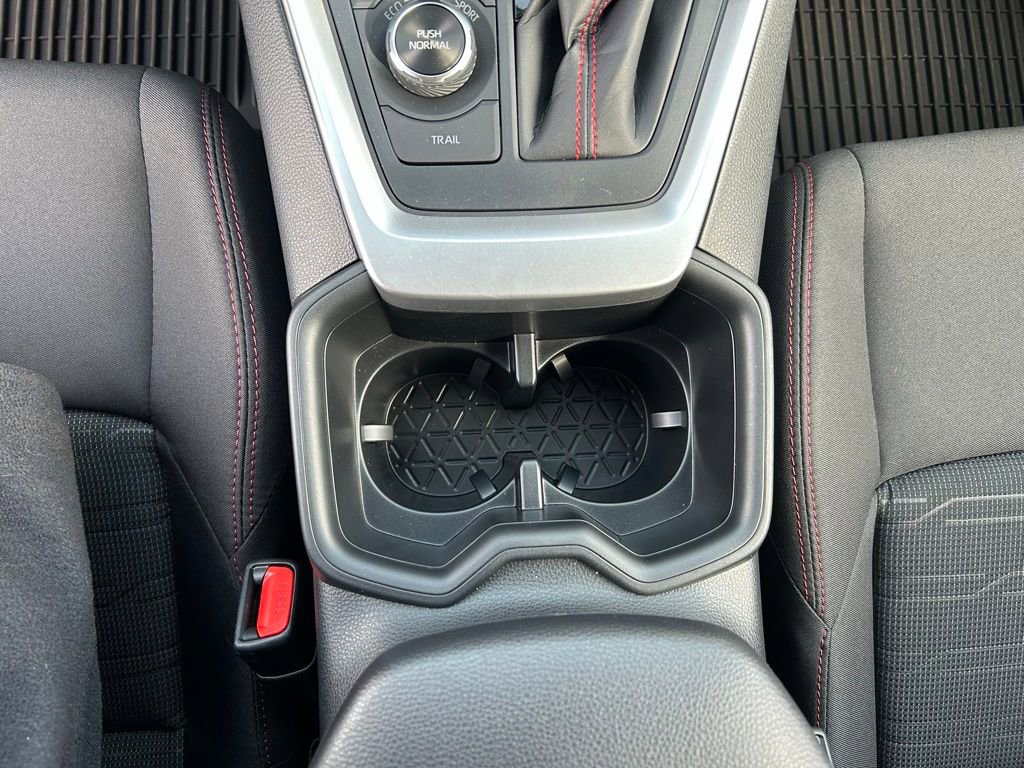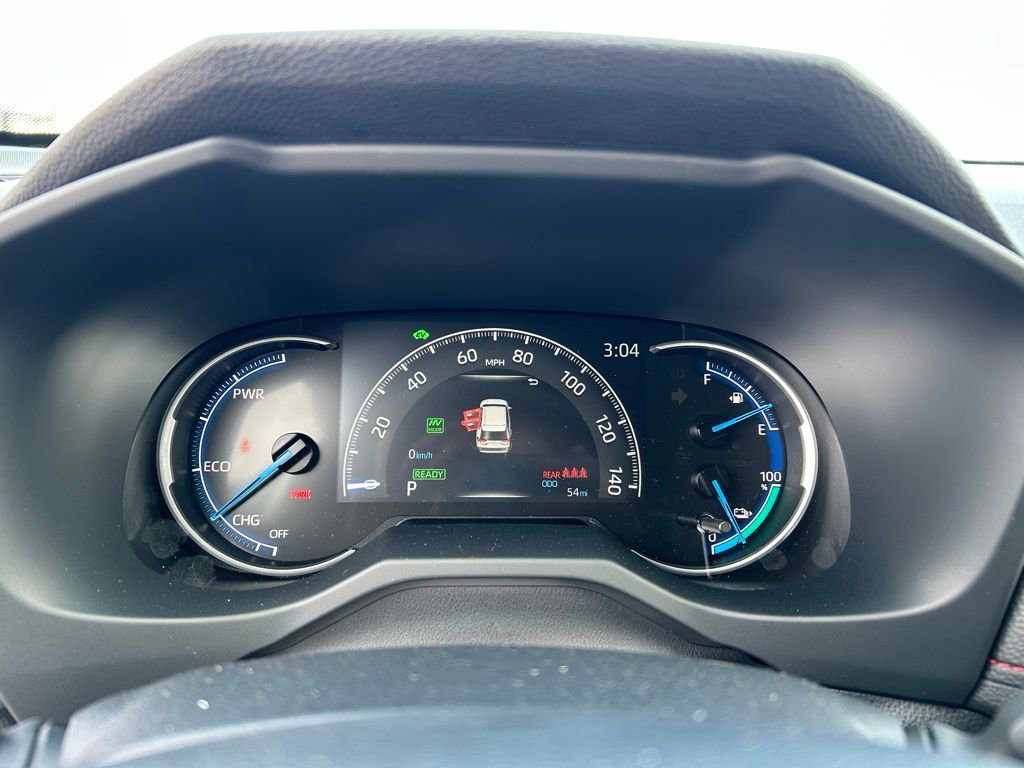 This Toyota RAV4 Plug-In Hybrid is well equipped and includes the following features and benefits, AWD, Dual zone automatic climate control system with dust and pollen filter and rear-seat vents Digital speedometer and instrumentation with analog hybrid system indicator, battery level meter and fuel gauge; 7-in. digital Multi-Information Display (MID) with customizable settings, odometer, tripmeters, clock, outside temperature, rear passenger seatbelt indicators, hybrid energy monitor, battery charge meter, fuel economy information, trip timer, shift-position and scheduled maintenance indicators, and warning messages Sun visors with sliding extensions and illuminated vanity mirrors Smart Key System on front doors and liftgate with Push Button Start, remote keyless entry system with lock, unlock and panic function, power liftgate and remote illuminated entry Power door locks with shift-linked automatic lock/unlock feature Black carpet flooring with driver-side footrest Black fabric-trimmed headliner Red-accented interior, including red stitching on dash and seat, and black in-dash storage trays Soft-touch dash and armrests with stitched dash accents One 12V/120W auxiliary power outlet in front instrument panel storage tray and one 12V/120W auxiliary power outlet in cargo area Five USB ports USB media port in front storage tray and four additional charge ports (two in front center console and two rear seat ports) Day/night rearview mirror Leather-trimmed tilt/telescopic 3-spoke steering wheel with silver accent and red-stitching, and controls for audio, Multi-Information Display (MID), Bluetooth® hands-free phone, voice-command, Dynamic Radar Cruise Control (DRCC), Lane Departure Alert (LDA) and Lane Trace Assist (LTA) Turn signal stalk with headlight controls and one-touch 3-blink lane change turn signals Wiper control stalk with front and rear window wiper controls Fabric-trimmed seats with sporty red stitching and embossed seat inserts; heated front seats; 8-way power-adjustable front driver's seat with lumbar support; 4-way adjustable front passenger seat with seatback pocket Heated front seating Rear liftgate window defogger Leather-trimmed shift lever with sequential mode Electric Parking Brake (EPB) with Brake Hold 2 front and 2 rear cup holders; 2 front and 2 rear bottle holders Passenger-side lockable glove compartment Front-door storage pockets with bottle holders Center console with covered storage compartment, two cup holders, drive mode, Electric Parking Brake (EPB) and automatic Brake Hold controls, and front storage tray Overhead console with maplights, sunglasses storage, and Safety Connect® button Power windows with auto up/down and jam protection in all positions 60/40 split reclining fold-flat rear seat with center armrest and cup holders Front-seat reading lights, dome light and cargo area light Cargo area tonneau cover Height-adjustable rear cargo area deck board 8-in. Toyota Audio Multimedia, six speakers, with wireless Apple CarPlay® & Android AutoTM compatible, SiriusXM® with 3-month trial. See toyota.com/audio-multimedia for details.. Odometer is 7599 miles below market average!