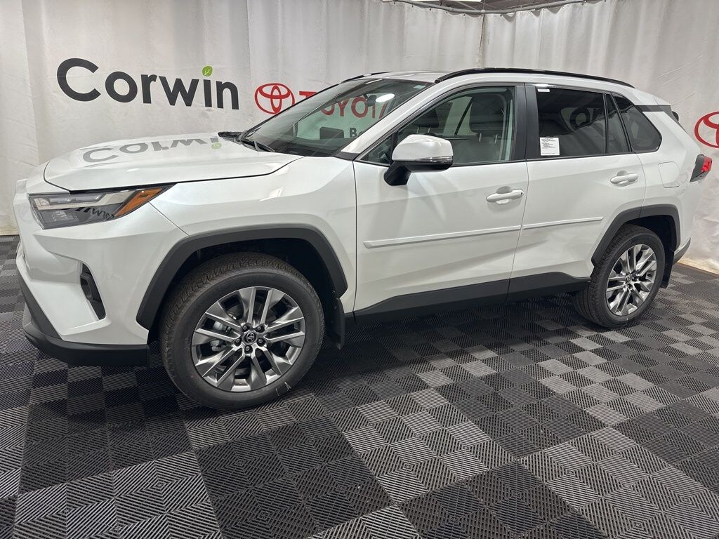 Our 2025 Toyota RAV4 XLE Premium AWD in bold Ice Cap is ready for adventures. Motivated by a 2.5 Liter Dynamic Force 4 Cylinder delivering 203hp to an 8 Speed Automatic transmission. This All Wheel Drive SUV also unlocks advanced capability with multiple performance modes, achieving nearly 35mpg on the highway. Our RAV4 shows off rugged sport-utility style with LED lighting, built-in fog lamps, a power liftgate, a power sunroof, dual chrome-tipped exhaust outlets, and 19-inch alloy wheels.