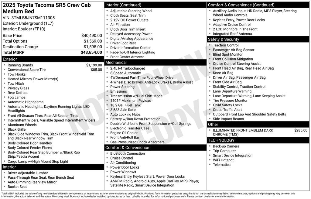 2025 Underground Toyota Tacoma SR5 CARFAX One-Owner. Clean CARFAX.